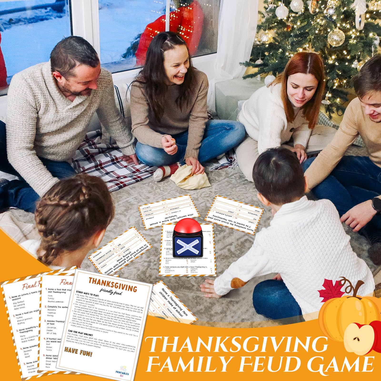 - Q: How many players can participate in the Thanksgiving feud game? A: The game is designed for group play, and while there isn't a strict limit on the number of players, it works best with adult groups to facilitate lively interaction and fun.