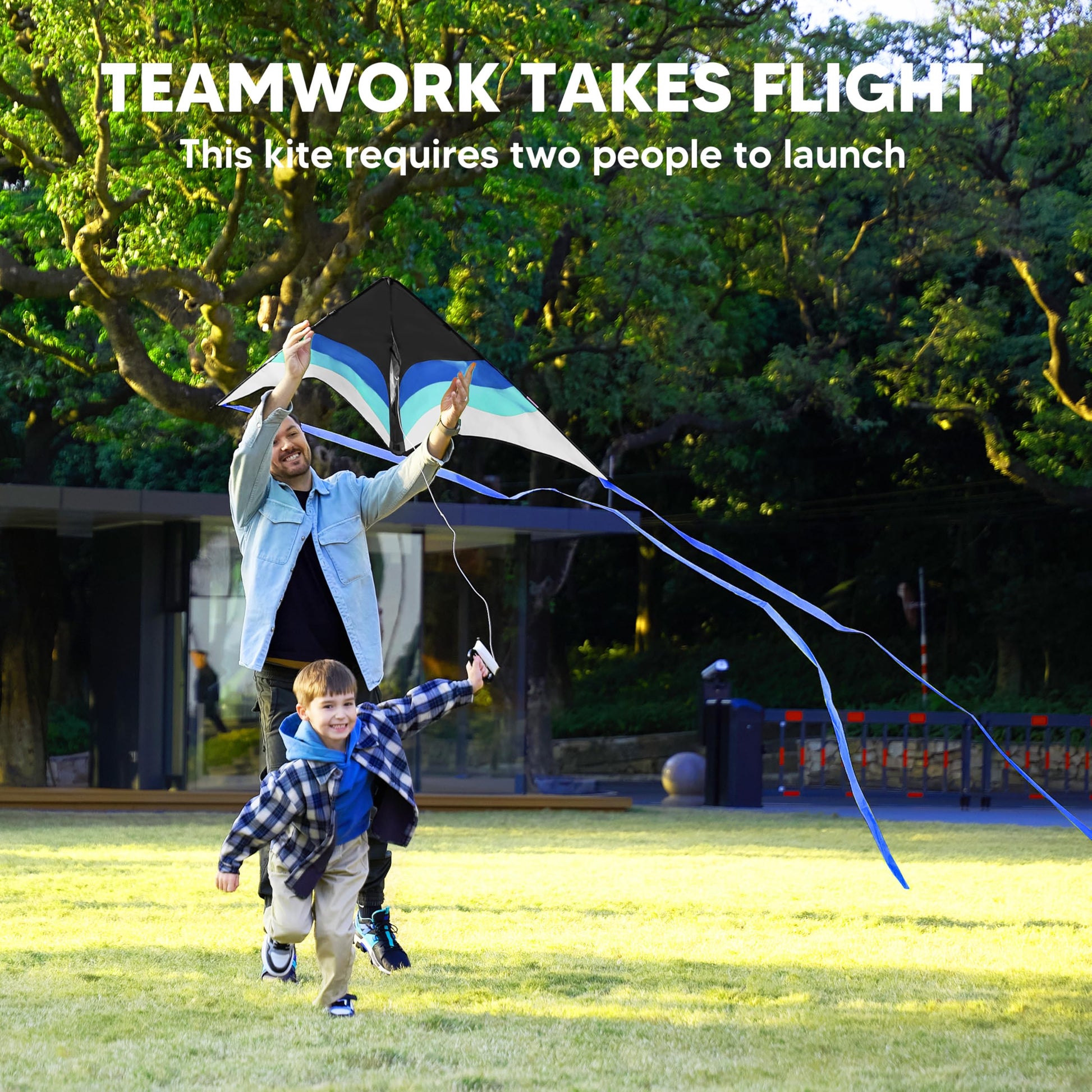 Syncfun Large Delta Kite Gradient Blue- Easy To Fly For Kids And Adults, Beach Kite With 328 Ft String For Outdoor Games And Act
