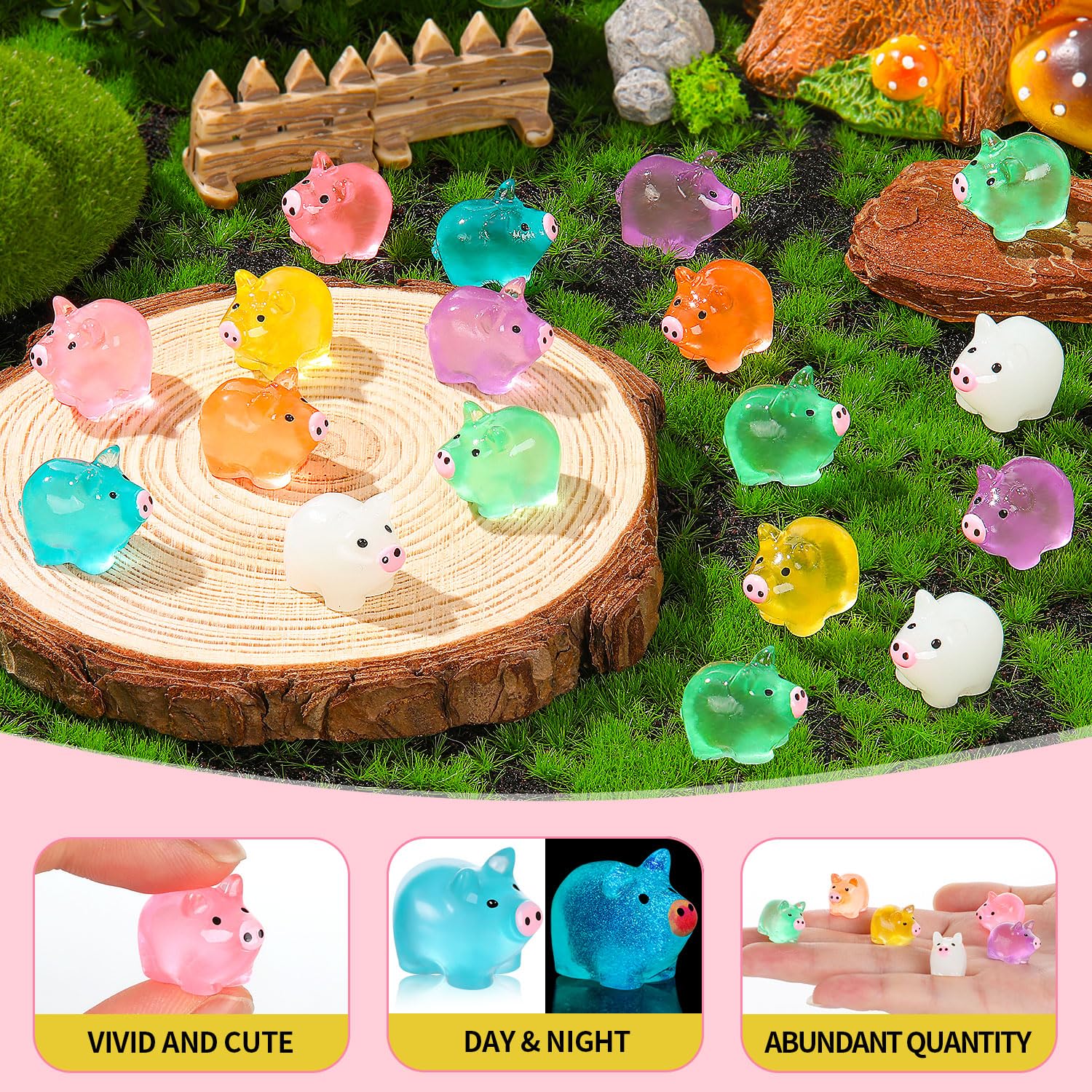 SYWHXY 112PCS Luminous Mini Resin Pigs Cute Mini Pigs Figures Glow in The Dark, Tiny Pigs Miniature Charms Ornament for Garden L