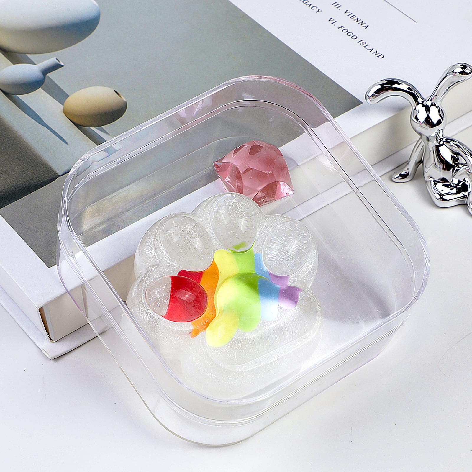 Crystal Rainbow Paw: The taba squishy kit features a cute clear crystal cat paw shape with rainbow color decoration inside, making the whole cat paw toy more attractive and you can't help but want to have it | Extraordinary Sensory Experience: Enjoy the soft, delicate touch of the taba cat's paw.Its excellent elasticity provides a satisfying squeezing sensation that helps relieve stress and anxiety while improving concentration at work or school | High Quality Materials: The rainbow squishy cat paw toy is handmade from silicone, which is very soft and flexible. It is designed to provide long-lasting fun while ensuring that it is enjoyed by young and old alike | Perfect Gift Choice: The taba squishy paw is beautifully packaged and individually wrapped, making it the perfect gift for friends and family. Surprise them with this unique and fun squishy cat paw stress reliever toy | Tip: Although our rainbow cat paw looks like delicious fudge, it is not edible. And be careful to prevent accidentally eating any part