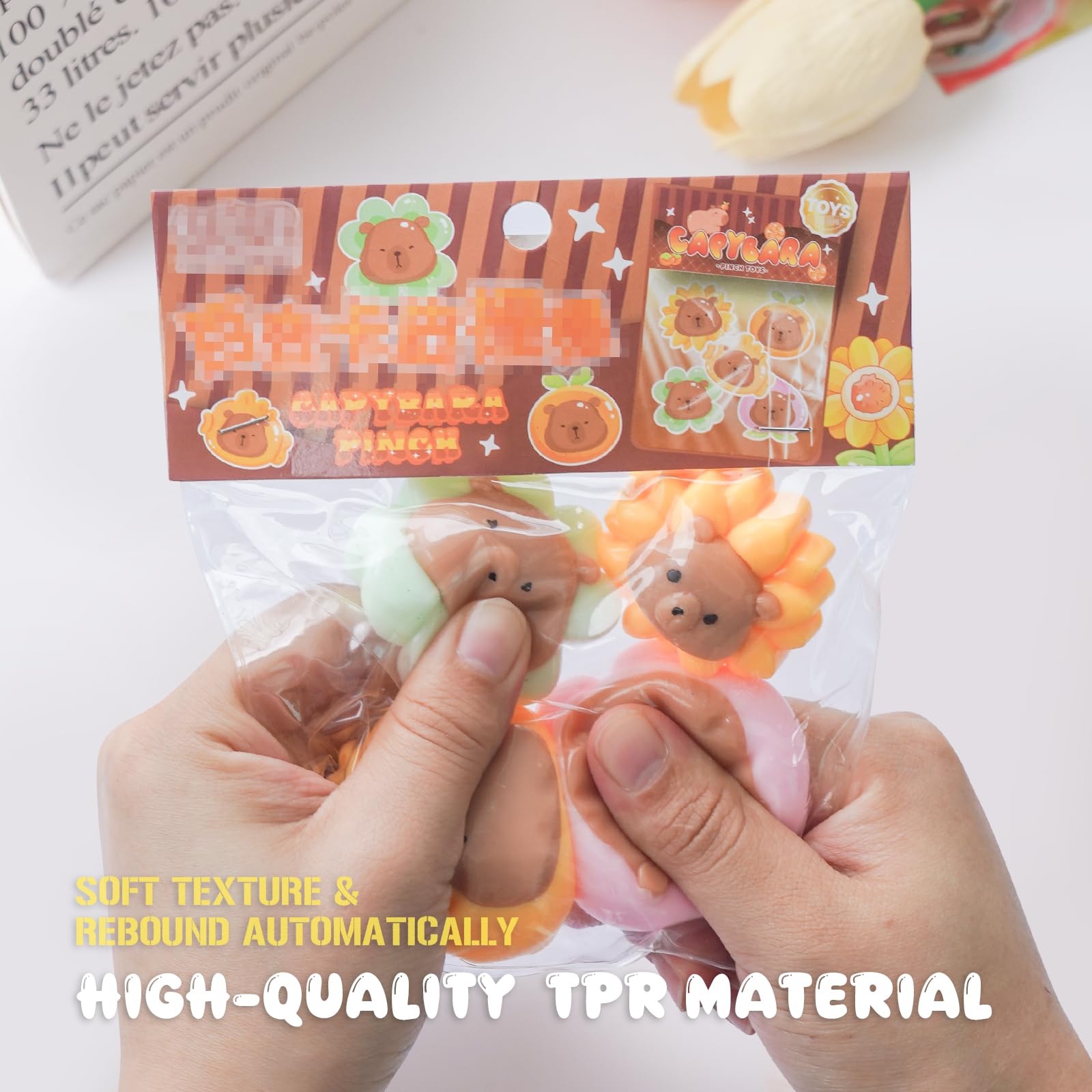 The squishy is cute and soft jelly that fits perfectly in the palm of the hands. It is placed in a transparent bag and the small balls and other small accessories inside are placed manually so the color size and style are random. These stress balls for mature-themed can be easily tucked into pockets backpacks bags etc. as travel toys!