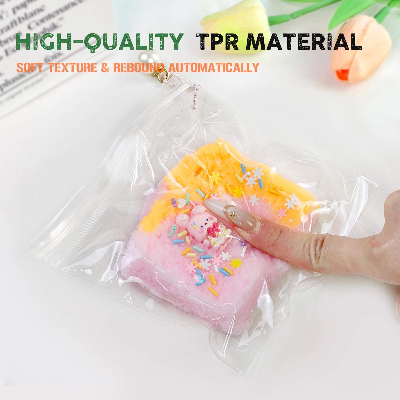 The squishy is cute and soft jelly that fits perfectly in the palm of the hands. It is placed in a transparent bag and the small balls and other small accessories inside are placed manually so the color size and style are random. These stress balls for mature-themed can be easily tucked into pockets backpacks bags etc. as travel toys!