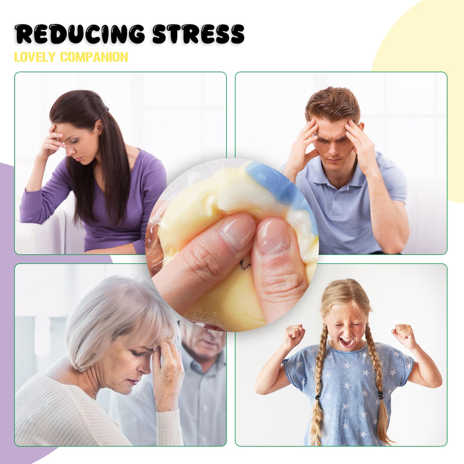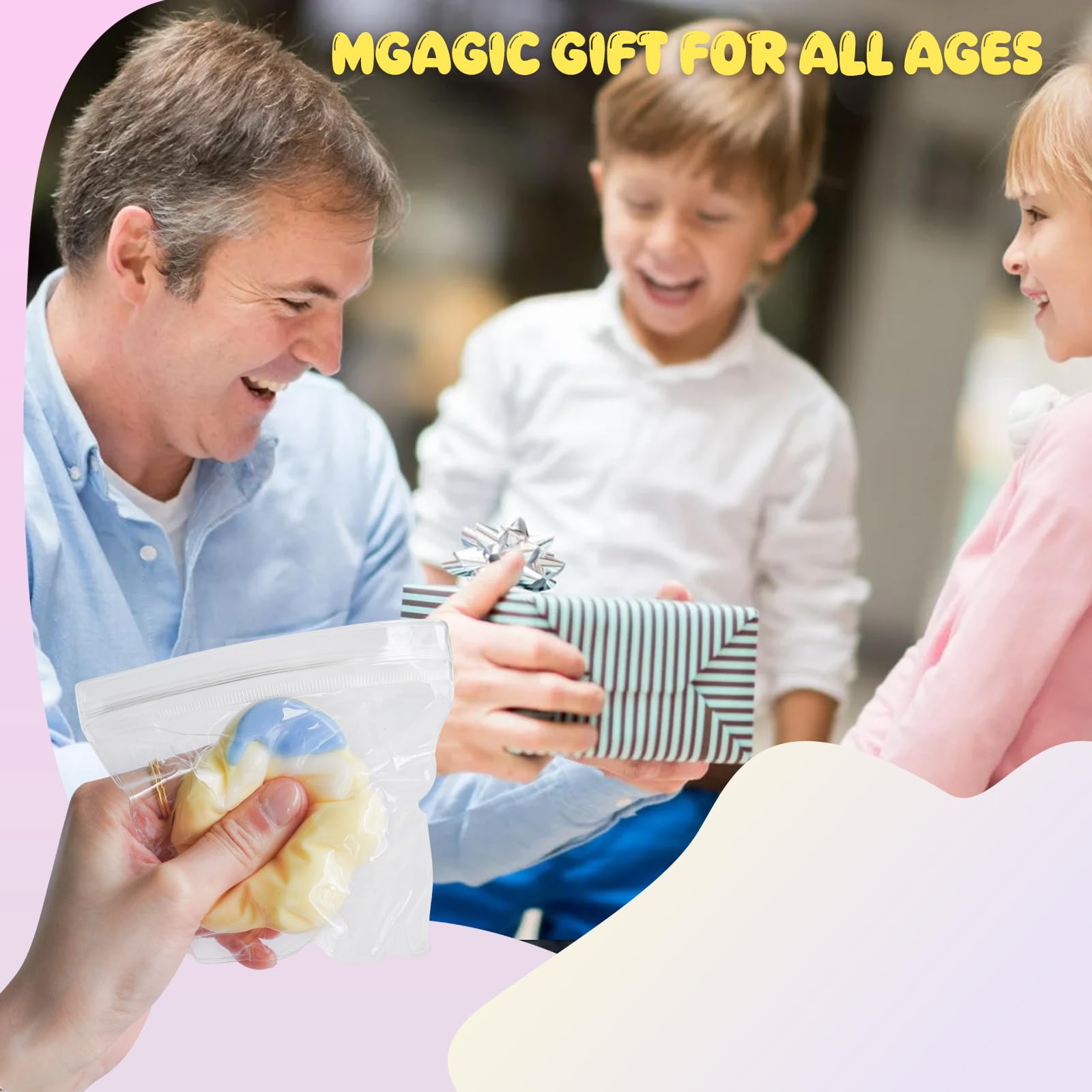 The squishy is cute and soft jelly that fits perfectly in the palm of the hands. It is placed in a transparent bag and the small balls and other small accessories inside are placed manually so the color size and style are random. These stress balls for mature-themed can be easily tucked into pockets backpacks bags etc. as travel toys!