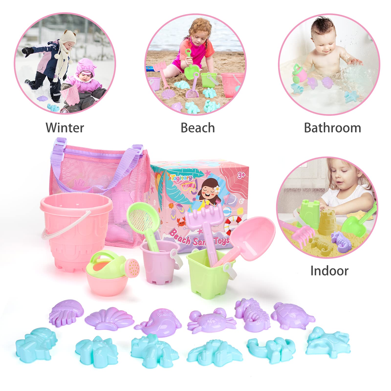 Tagitary Beach Sand Toys Set for Kids 3-10 with Bucket Watering Can Shovel Rake Sand Molds Beach Shell Bag