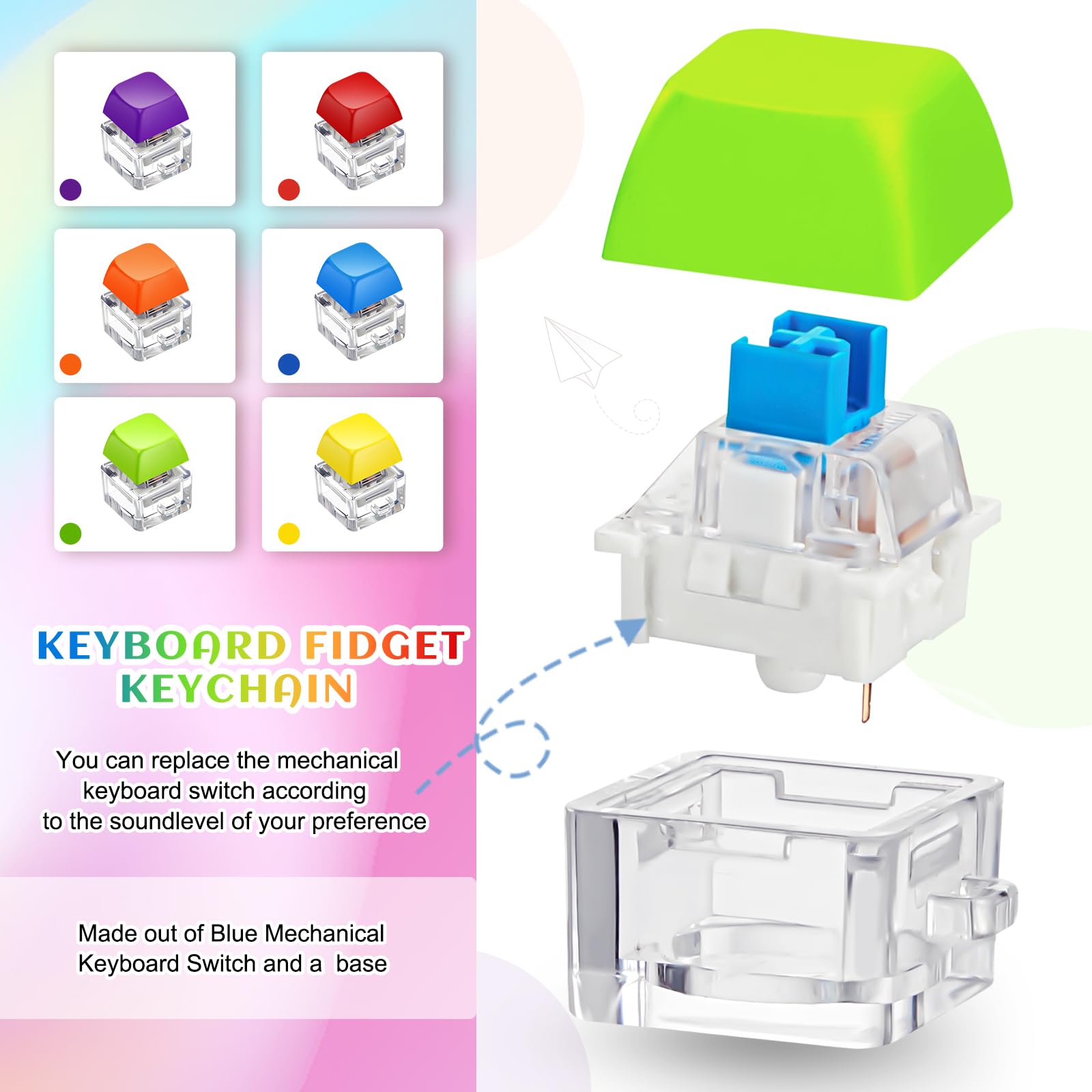 Features: Impress your gift recipient: You can send this mechanical key fidget toy to your friend colleagues as a sweet gift and they will be happy and surprised to receive such an interesting gift. Simple to match: These fidget keychains come with 6 classic colors which can match with your daily outfit and home decorations well saving your time and energy in choosing and matching. Specifications: Main material: PBTMain color: red orange yellow green blue purpleSize: as shown in picturesPackage includes: 6 x Clicker fidget toysNotes: Manual measurement please allow slight errors on size. The color may exist a slight difference due to different screen displays. Suitable for people over 12 years old. mature-themeds' supervision is required. Small and inedible items are included please keep them away from young users.