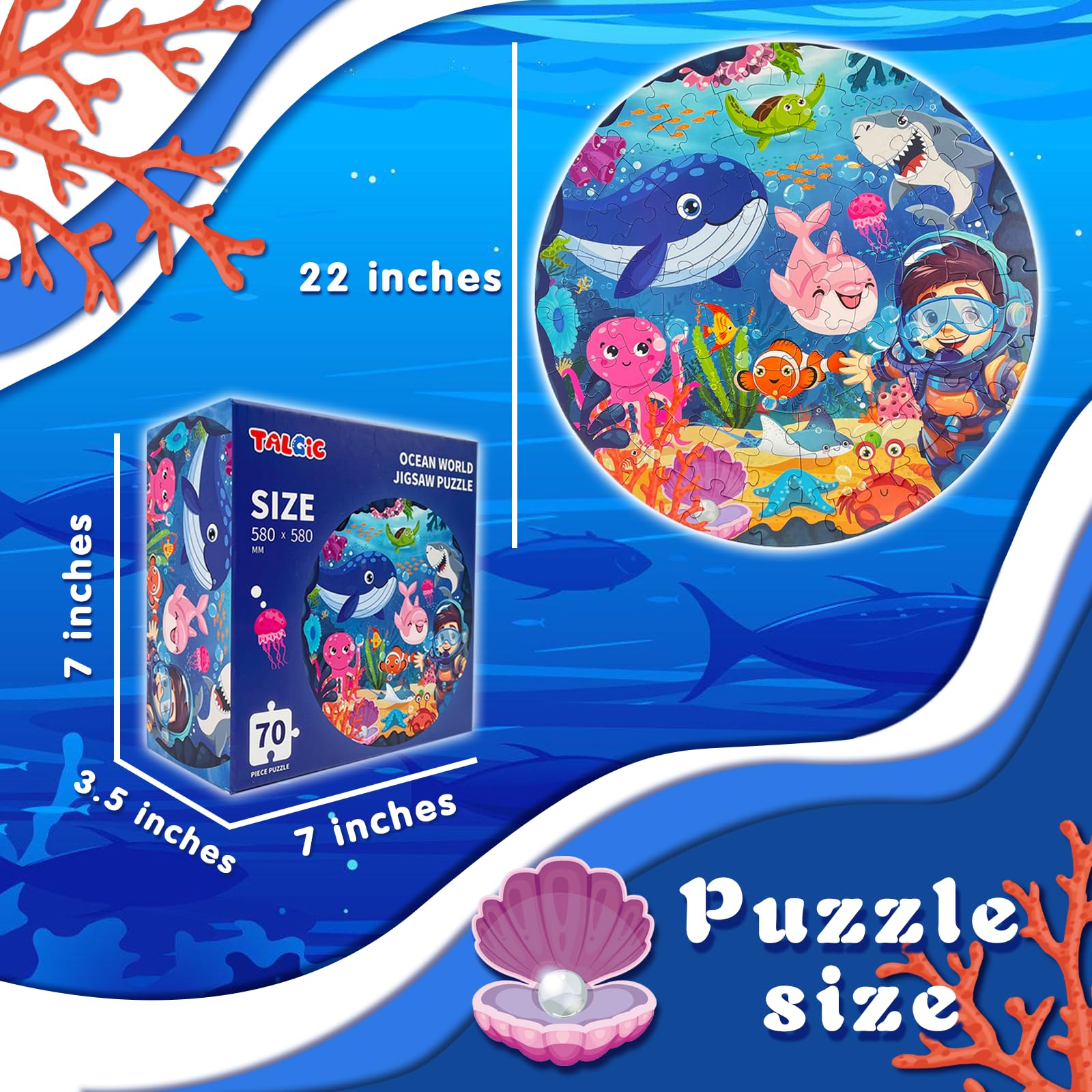Talgic Puzzles For Kids Ages 4-6, Large 70 Piece Round Ocean Floor Puzzles For Kids Ages 3-5, Kids Puzzles 4-6 With Colorful Und