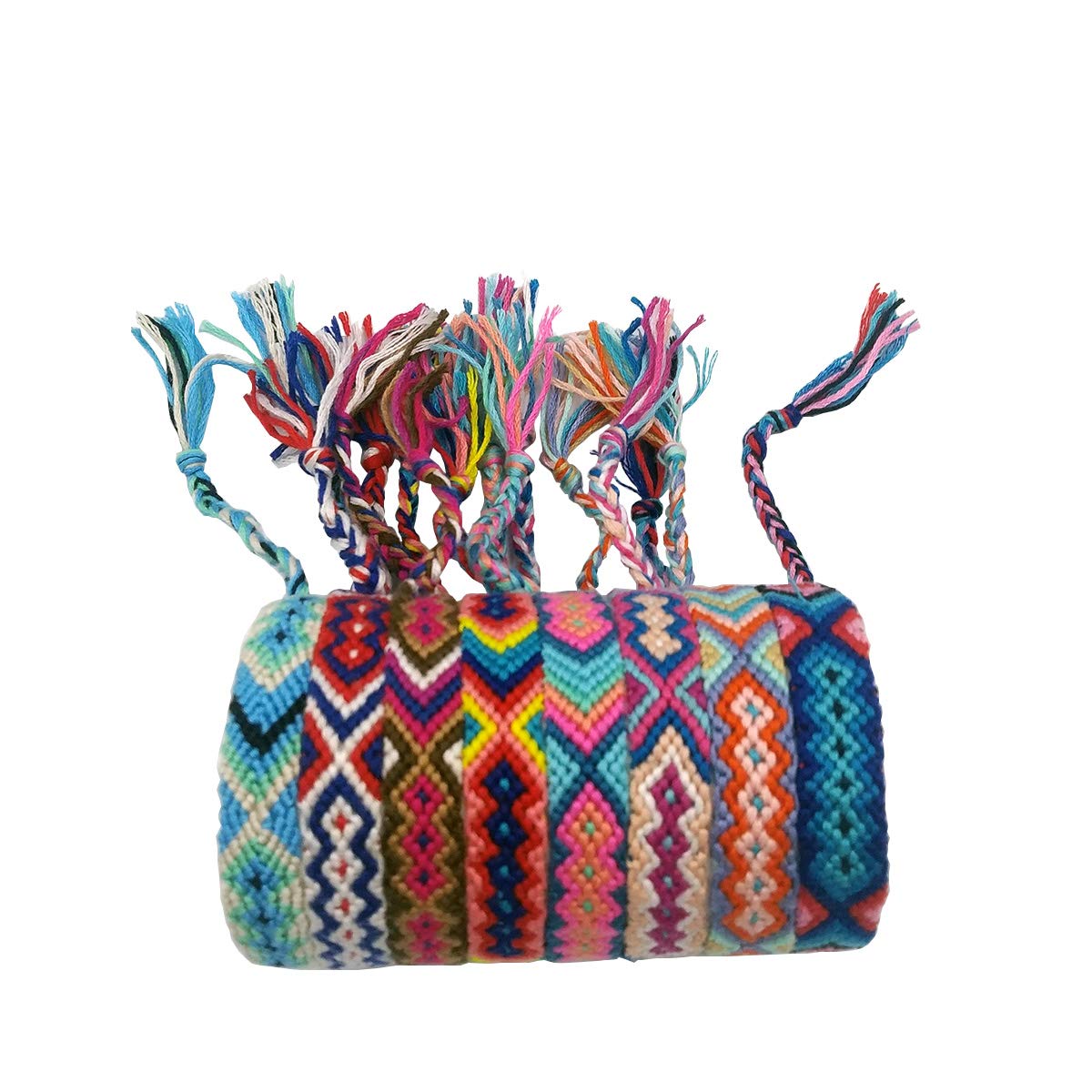 - Q: What colors are included in the pack of Tangser friendship bracelets? A: The pack contains 12 bracelets in randomly mixed colors. Each bracelet is designed to be very bright and colorful, making them perfect for themed parties or as gifts.