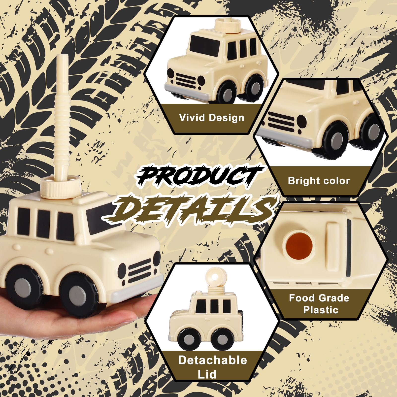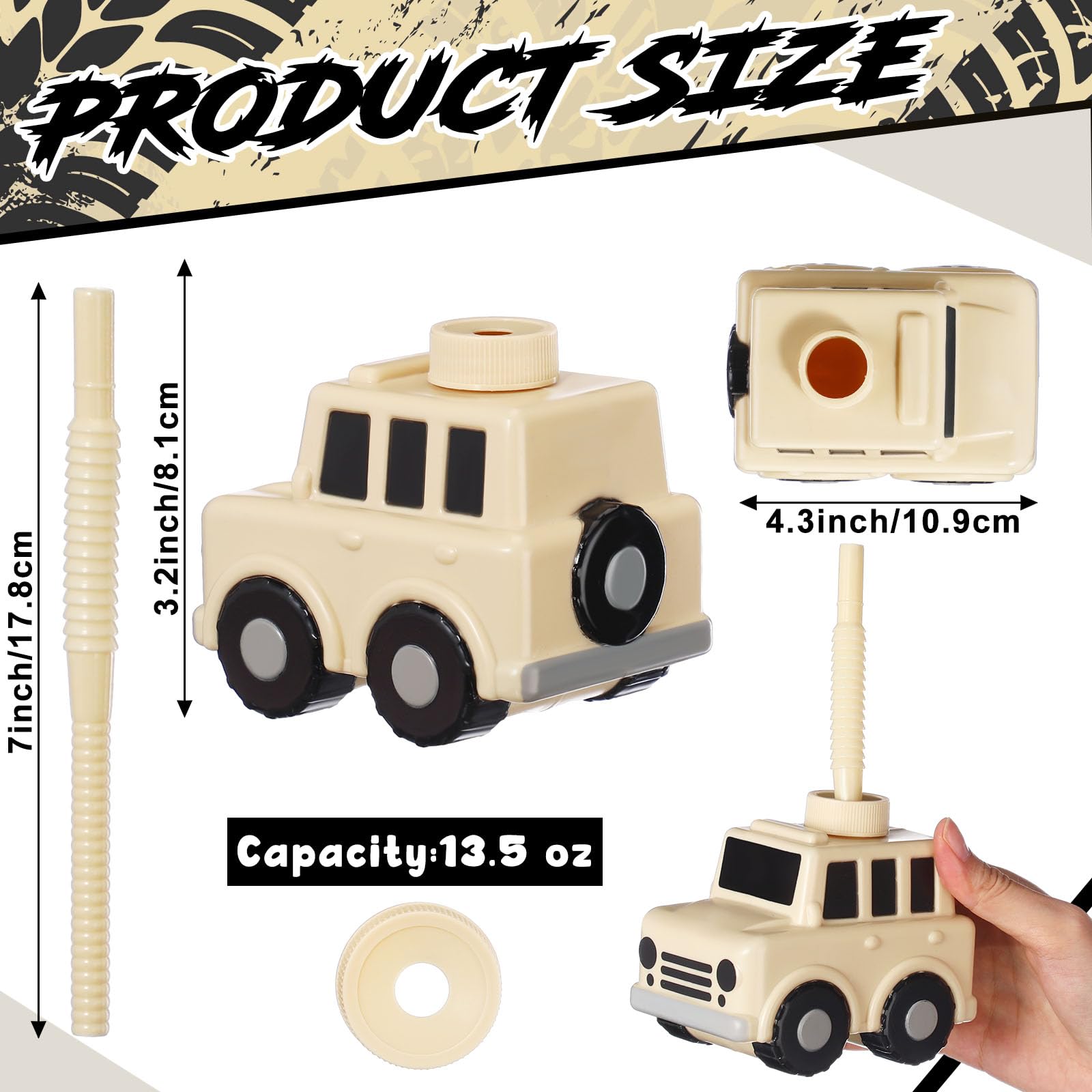 Features: Reusable and washable: Made of safety plastic material, car party favor cups are sturdy and serviceable, which are reusable and cleanable with water, odorless and safe to use, sufficient length of straws and caps can help drink and prevent leakage. Interesting safari SUV car cup: The car party favor cups for the car themed party are designed in the shape of safari SUV car, which is fun, arousing imagination, and improving childrens creative thinking and positive cognitive learning. Specifications: Material: plasticColor: as picture showsSize: 4.3 x 3.2 inchesCapacity: 10 ozPackage includes: 12 x safari SUV cups12 x StrawsNotes: Manual measurement, please allow slight errors on size. The color may exist slight difference due to different screen displays. Wash with water before use.