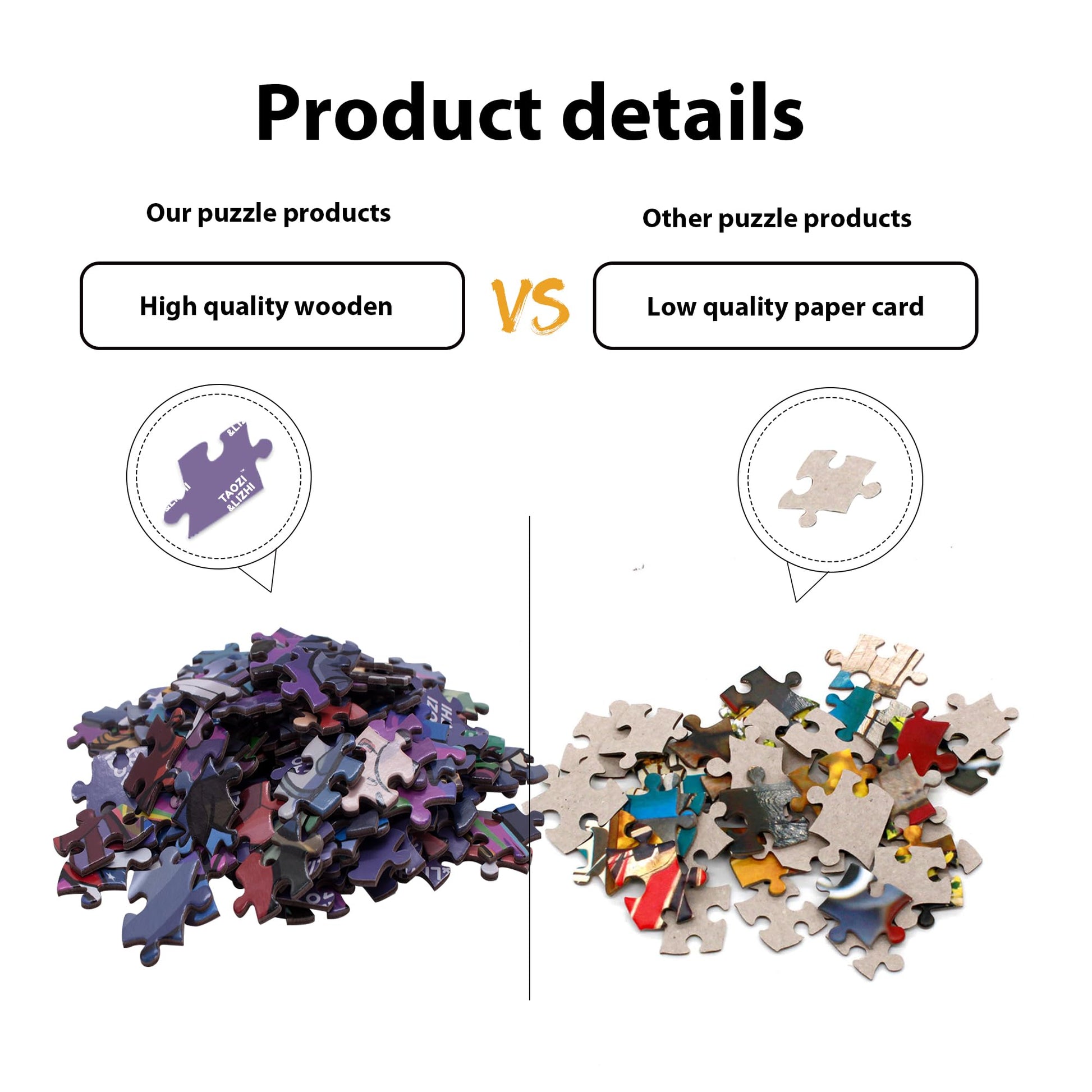 - Q: What materials are used in the puzzle construction? A: The puzzle is made from sturdy cardboard, featuring non-glare, non-toxic inks and well-cut pieces to ensure a great puzzling experience with virtually no puzzle dust.