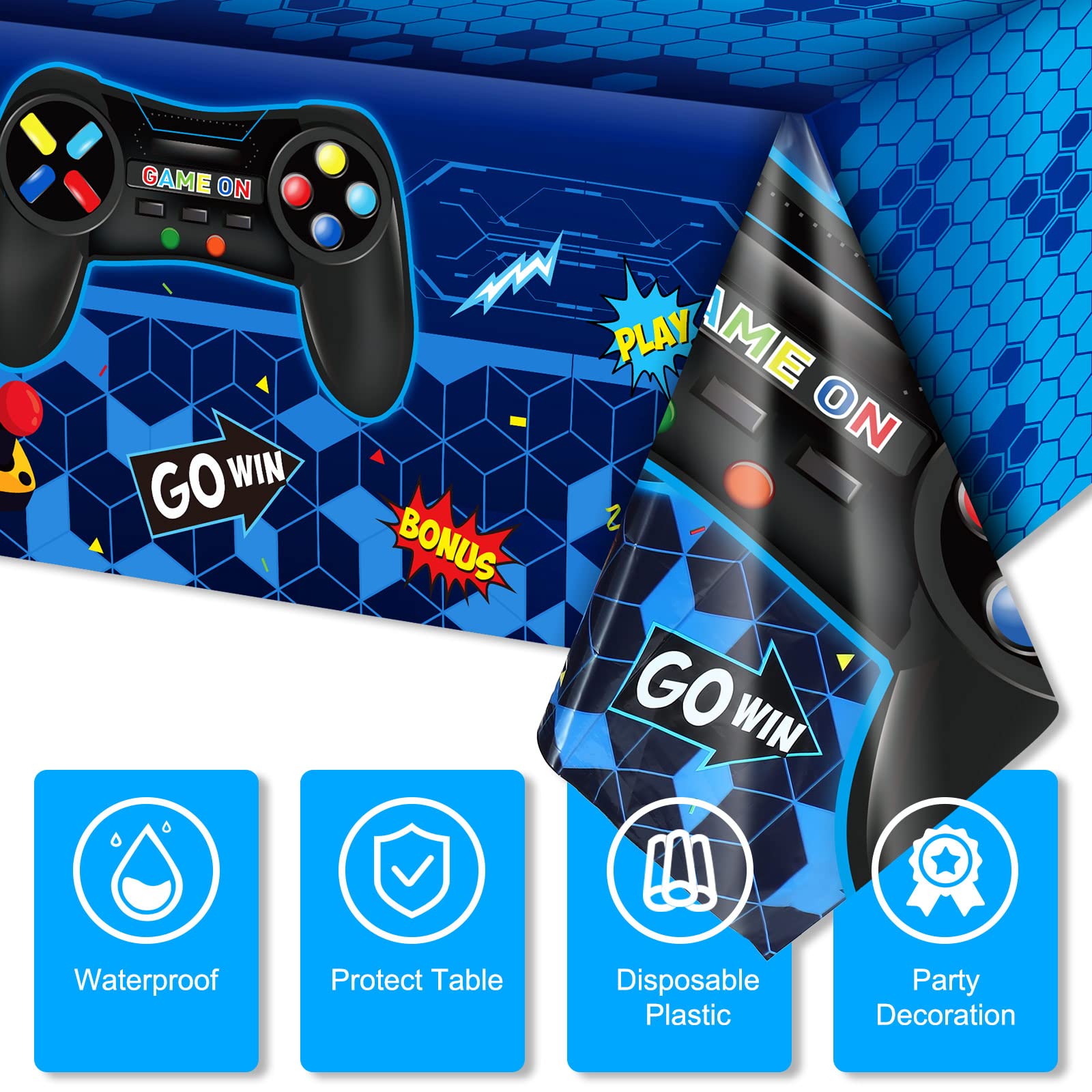 Tatuo 3 PCS Video Game Table Cover Video Game Birthday Decoration Game Theme Plastic Table Cloth Party Supplies for Boys Girls K