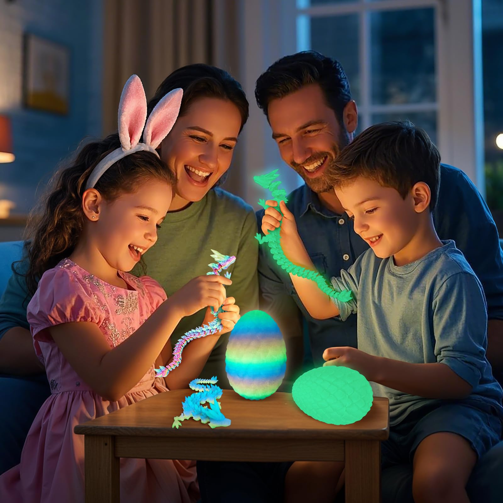 Tboline 3D Printed Dragon Egg Glow In The Dark, 3D Printer Full Articulated Crystal Animals Fidget Toy, Surprise Easter Mythical