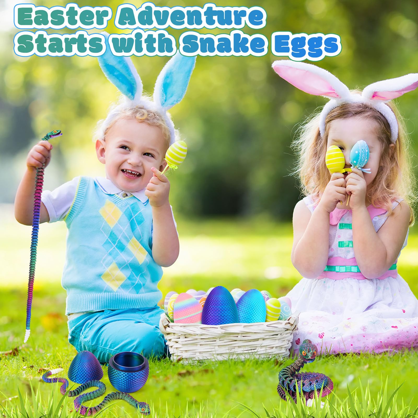 ?????Easter Adventure Awaits?Transform your Easter into a mysterious adventure! Our vibrant 3D-printed snake eggs are ideal for egg hunts, Easter basket Essentials, and gifts that will surprise and delight all ages! | ????Exciting Surprises Inside?Uncover the surprises within! Kids will love cracking open these colorful snake eggs to reveal their new snake friends, making Easter celebrations even more thrilling and memorable! | ???????Posable Fun?Articulated Snake Toy! Our snake toy can bend and pose in various ways, making it perfect for fidgeting, storytelling, or showing off. Endless fun awaits with this slithering companion! | ?????Eco-Friendly Safety?Safe & Eco-Friendly! Made from child-safe, eco-friendly PLA material because snakes care about the planet too! | ?????Perfect Gift for All Ages?Whether for a birthday, holiday, or just because, these snake eggs make a fantastic gift for children and adults alike. Bring a smile to someone's face with this unique and fun surprise!