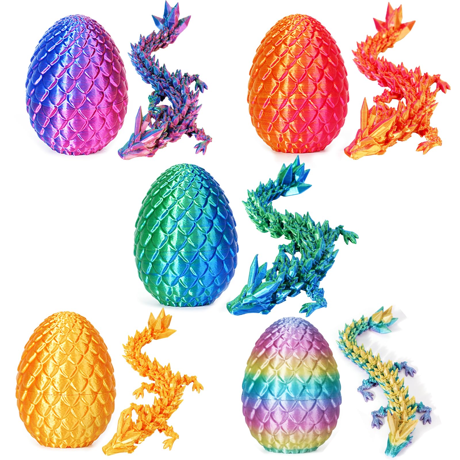 Tboline 5Pack 3D Printed Dragon Egg, Mystery Easter Egg Articulated Crystal Animals Fidget Toy For Kid Boy Girls, Mythical Piece
