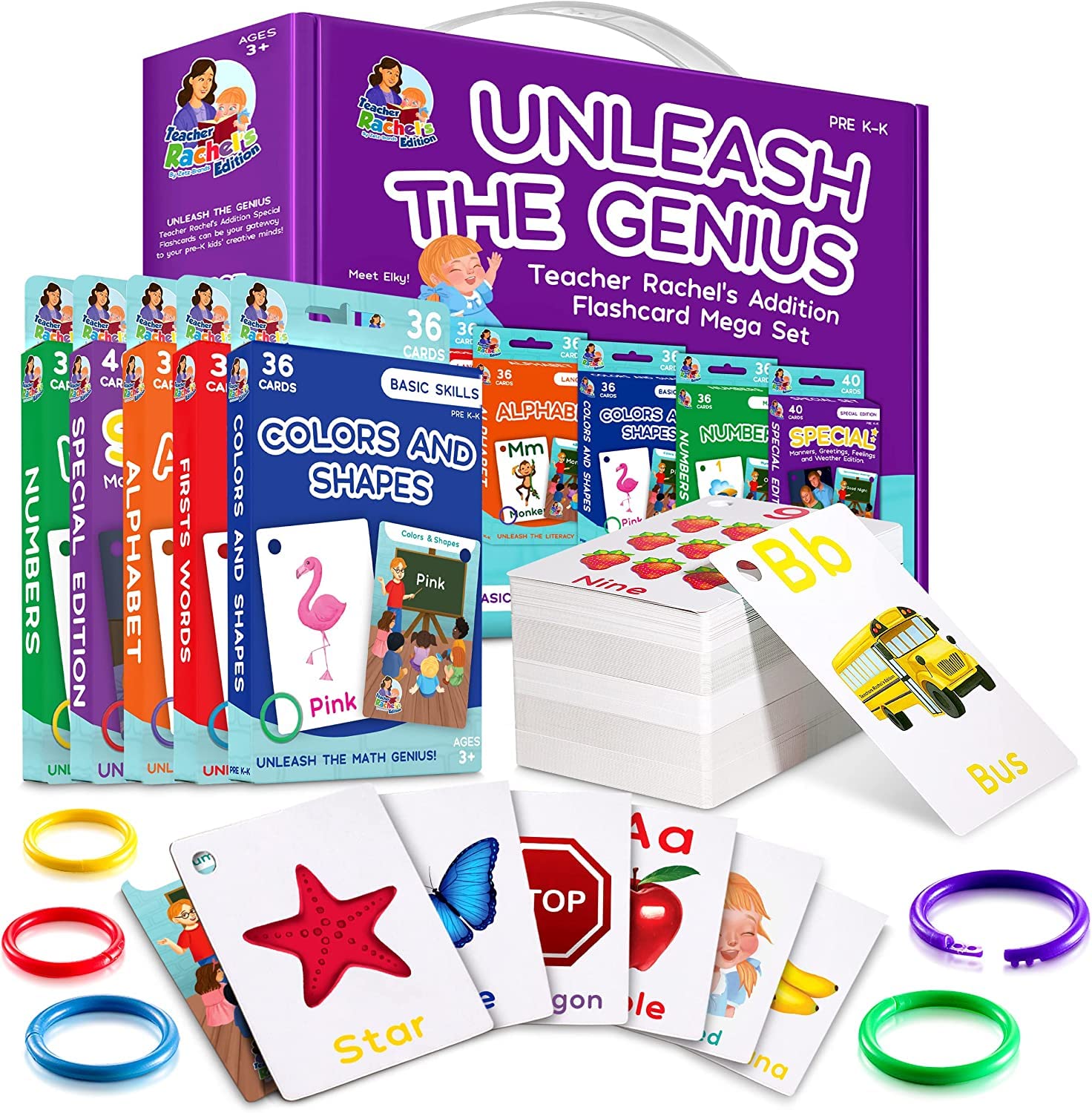 Teacher Rachel'S Educational Flash Cards For Toddlers - Set Of 5 184 Cards Pre K-K Mega Flashcards Set With First Words, Alphabe