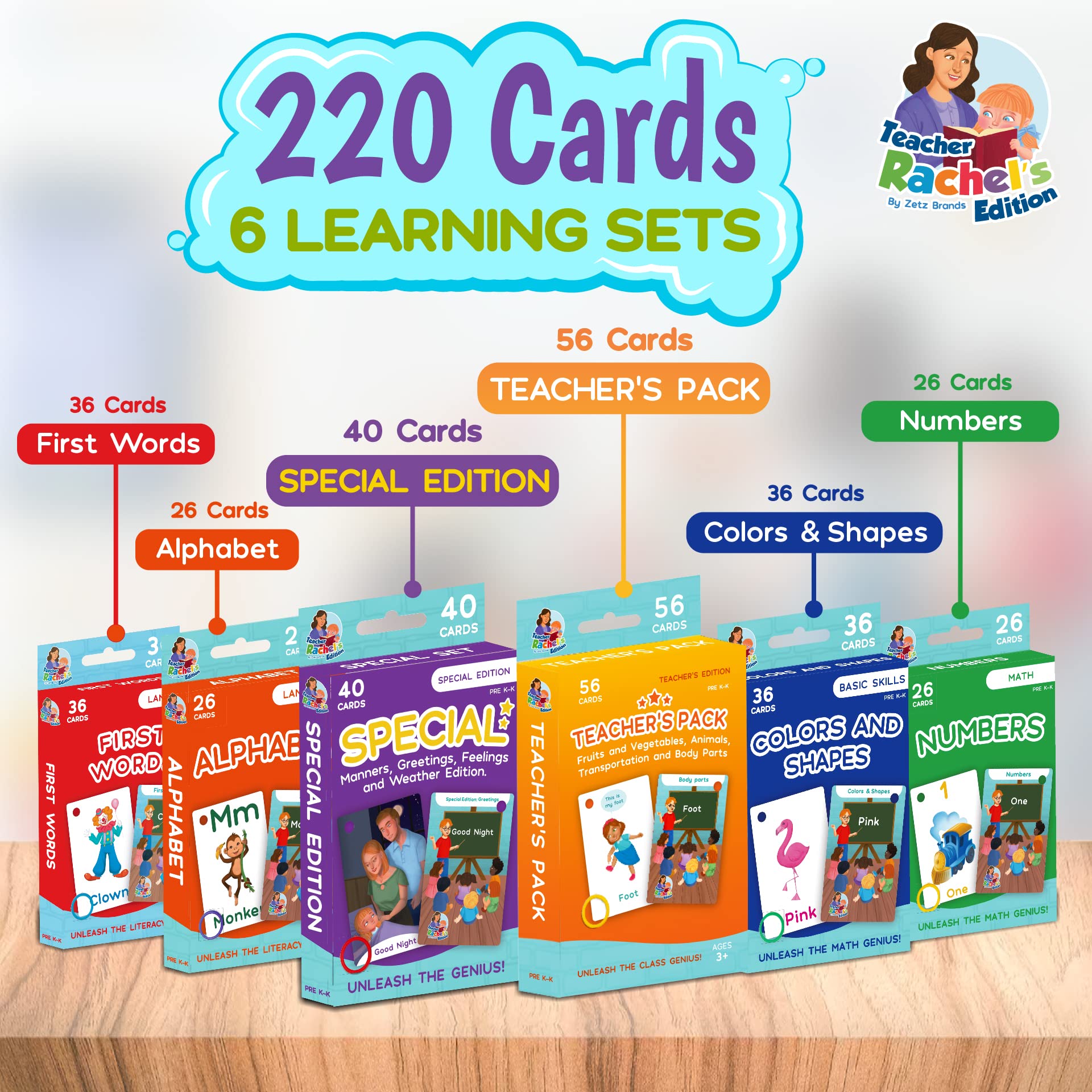 View compareTeacher Rachel'S Educational Flash Cards For Toddlers - Set Of 5 184 Cards Pre K-K Mega Flashcards Set With First Words, Alphabe