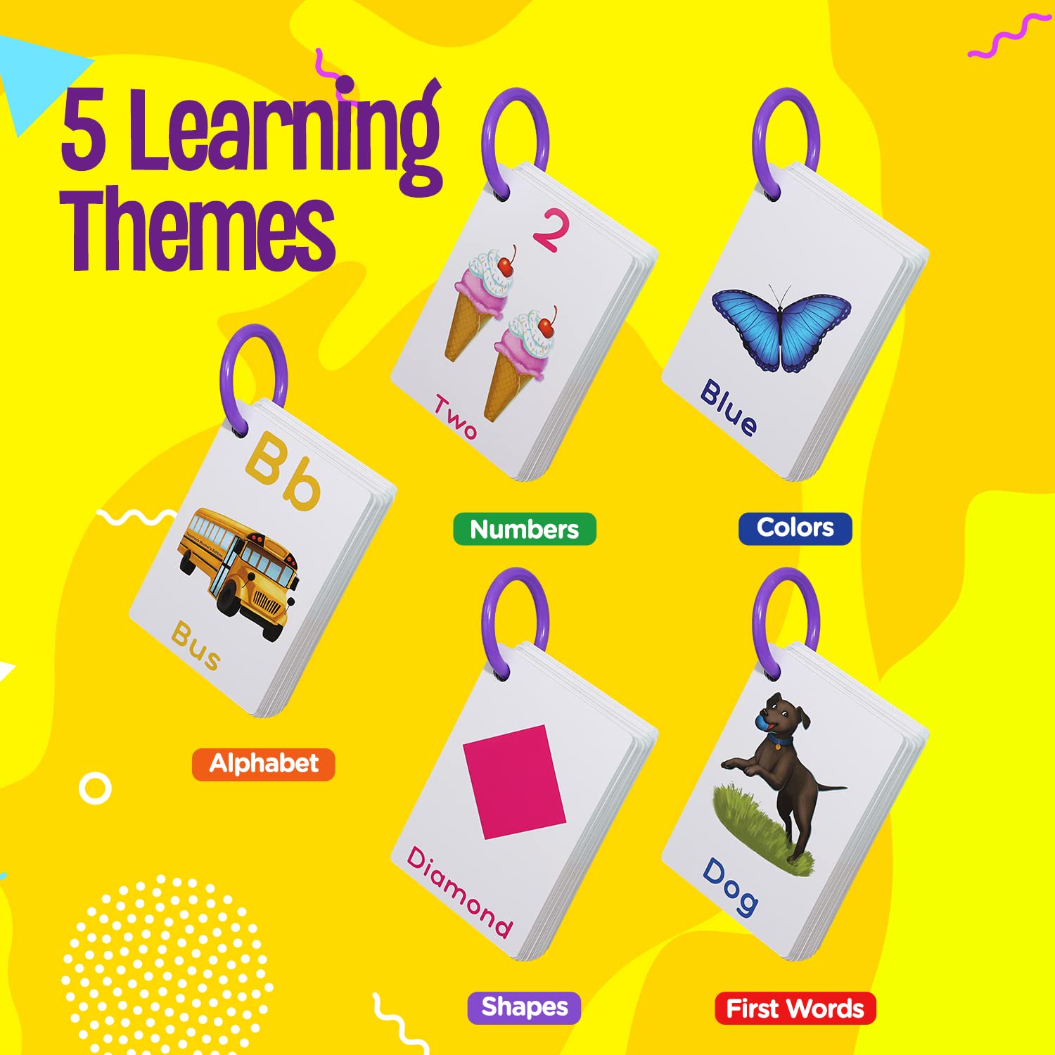 - Q: How many flashcards are included in the set? A: The set includes a total of 64 flashcards, covering essential topics such as first words, alphabets, colors, shapes, and numbers to support early learning.