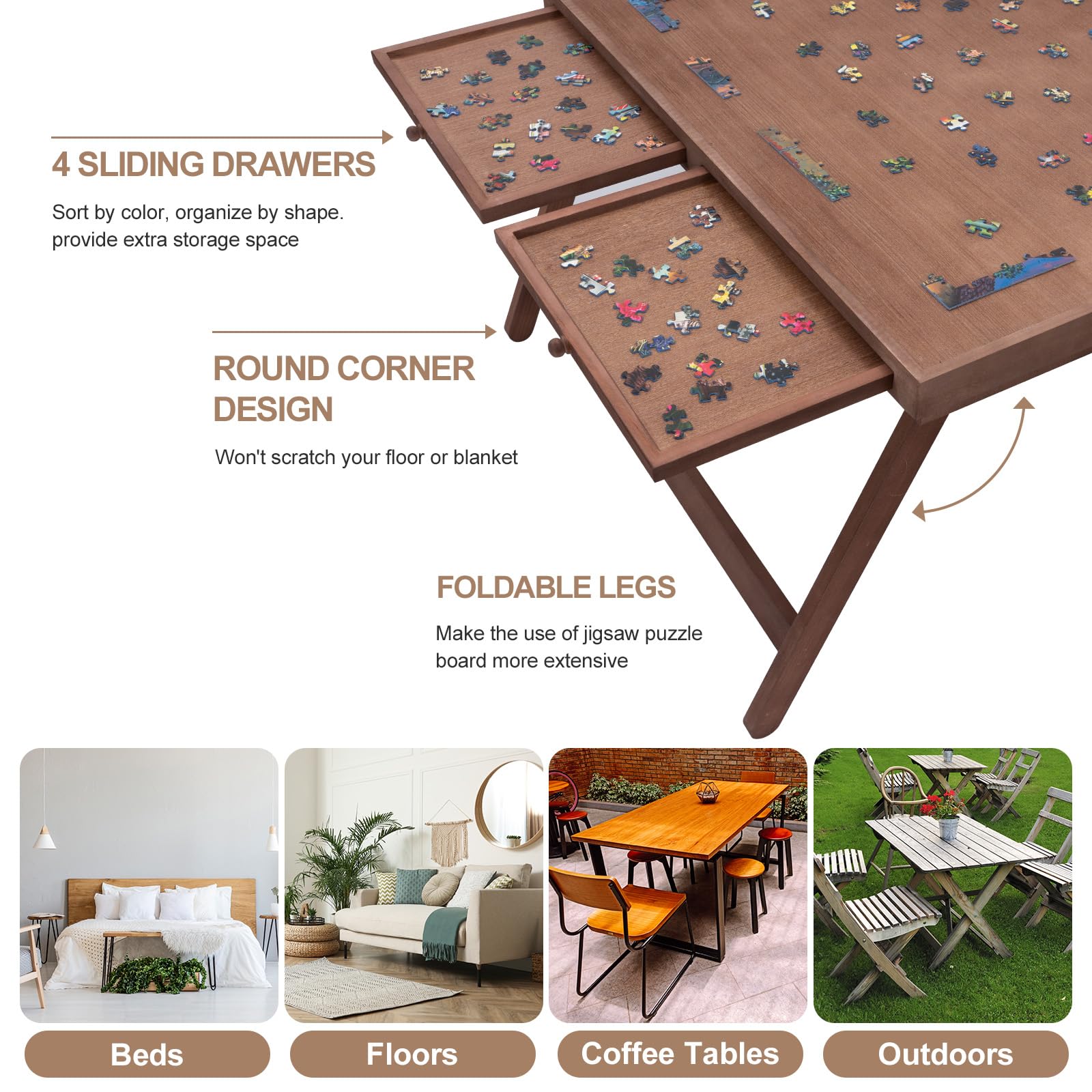 - Q: What features enhance the organization of puzzle pieces? A: The puzzle board features four drawers and a protective cover to keep puzzle pieces organized and tidy.