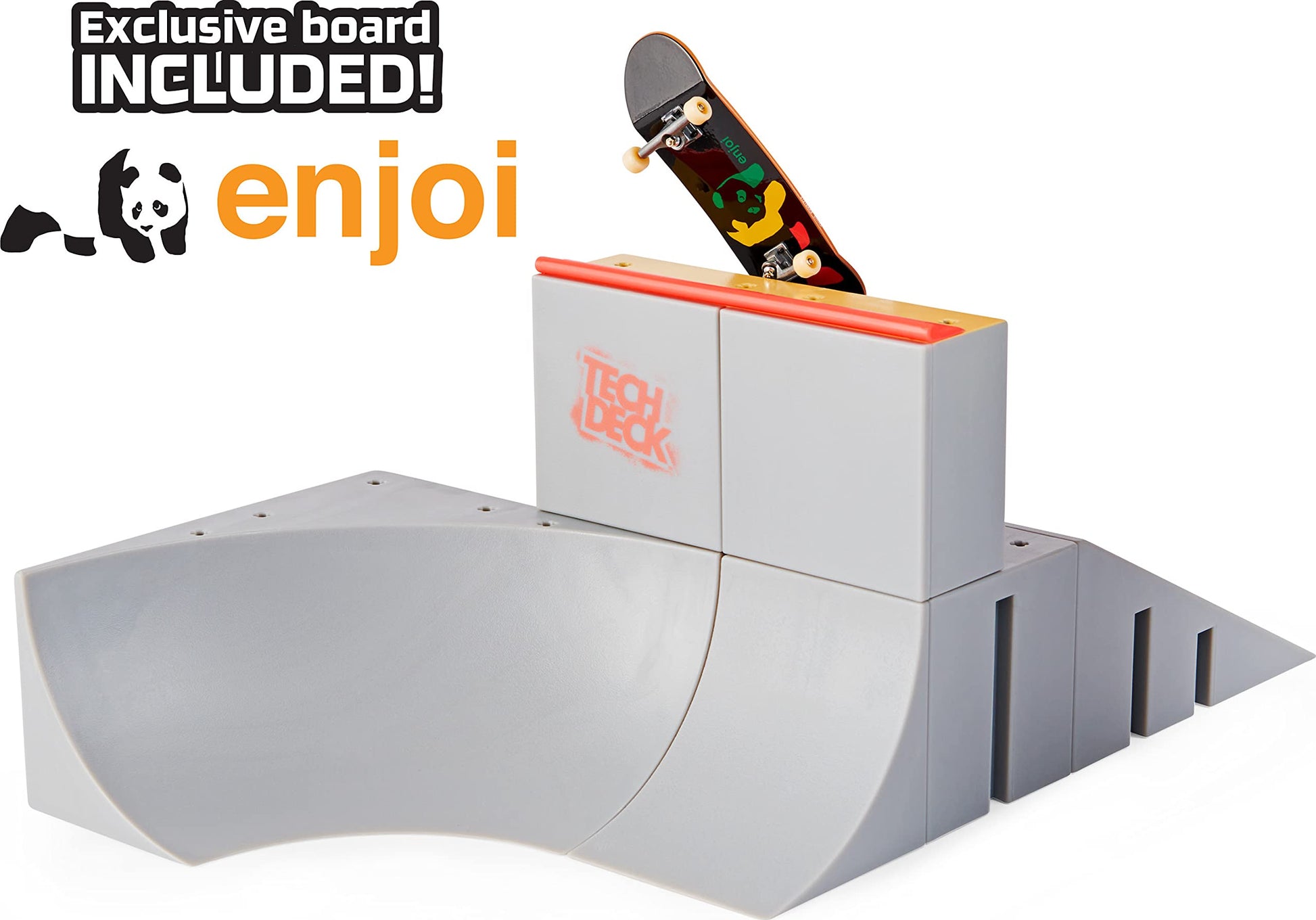 Grab some air with Tech Deck the real deal fingerboards featuring authentic graphics from real skate companies! The Bowl Builder X-Connect Park Creator ramp set includes everything you need to build an awesome custom park for you to perfect your finger skateboard skills. Set up different combinations with a bowl corner funbox panels coping and ramps to learn and progress your tricks. Jump the box carve the corner slide the coping or set up and customize the spot in any way you like. Skate the park with the included limited availability Enjoi Skateboards pro fingerboard and add to your mini skateboard collection. Combine the park with other X-Connect compatible ramps such as the Jump N Grind or Nyjah Skatepark ramp sets (each sold separately) to build the ultimate facility for you to shred. Use the Bowl Builder X-Connect Park Creator with your Tech Deck fingerboard collection or Tech Deck BMX (each sold separately). Tech Deck mini skateboards for fingers and ramp sets make the perfect gift for girls toys age 6-8 who love small toys and cool toys or as an alternative to toy cars as a boys toys age 6-8 item. If you want real skate graphics from real skate companies then it has got to be Tech Deck - start small go big and collect them all.