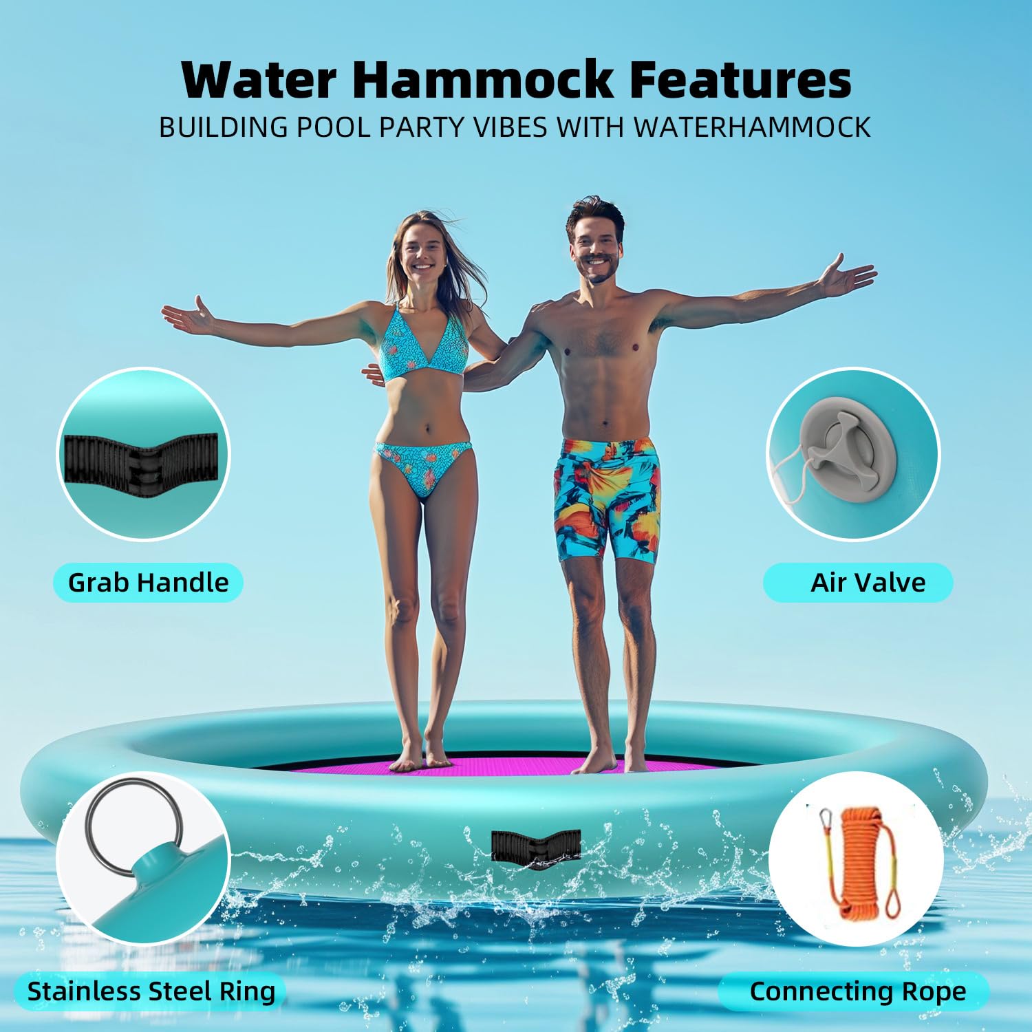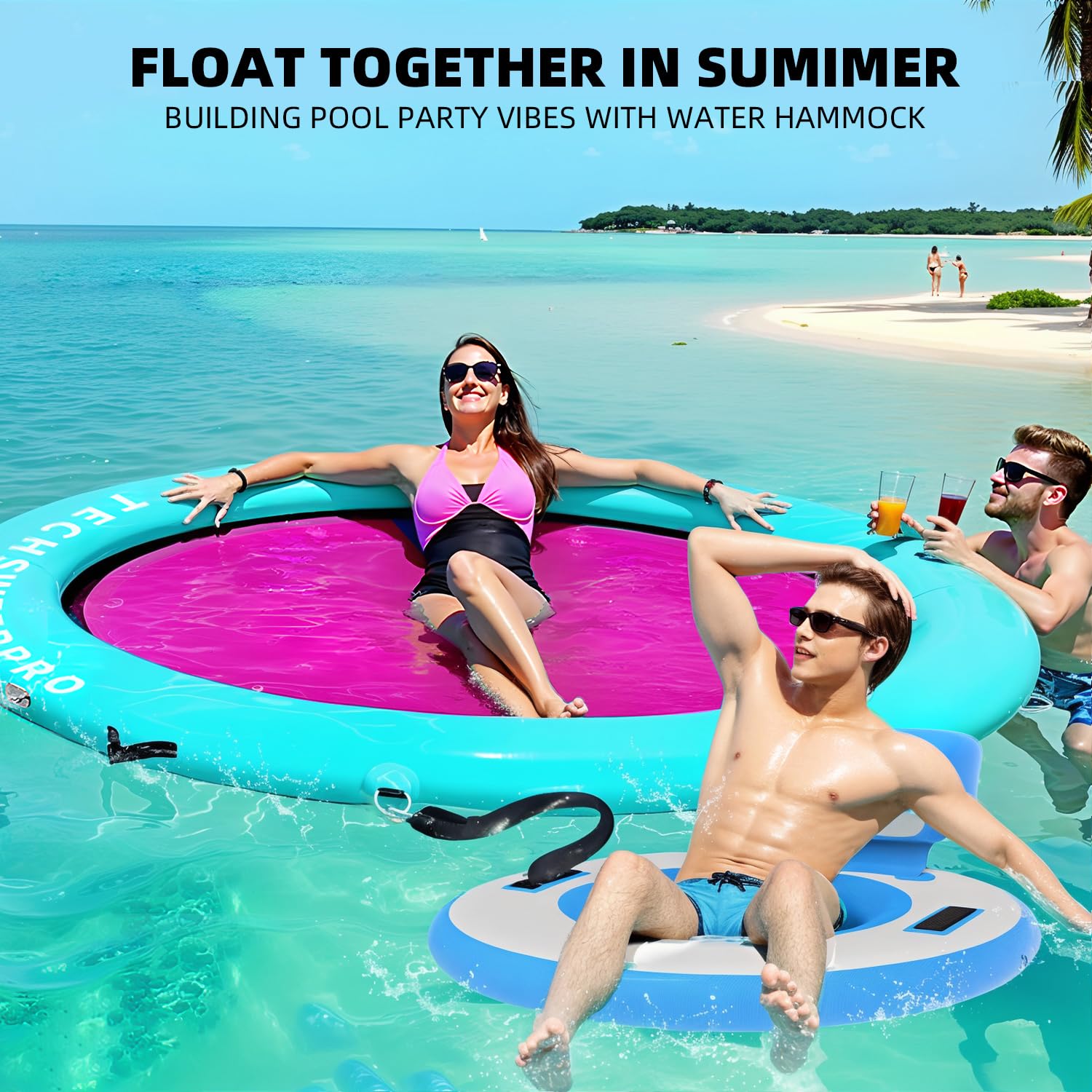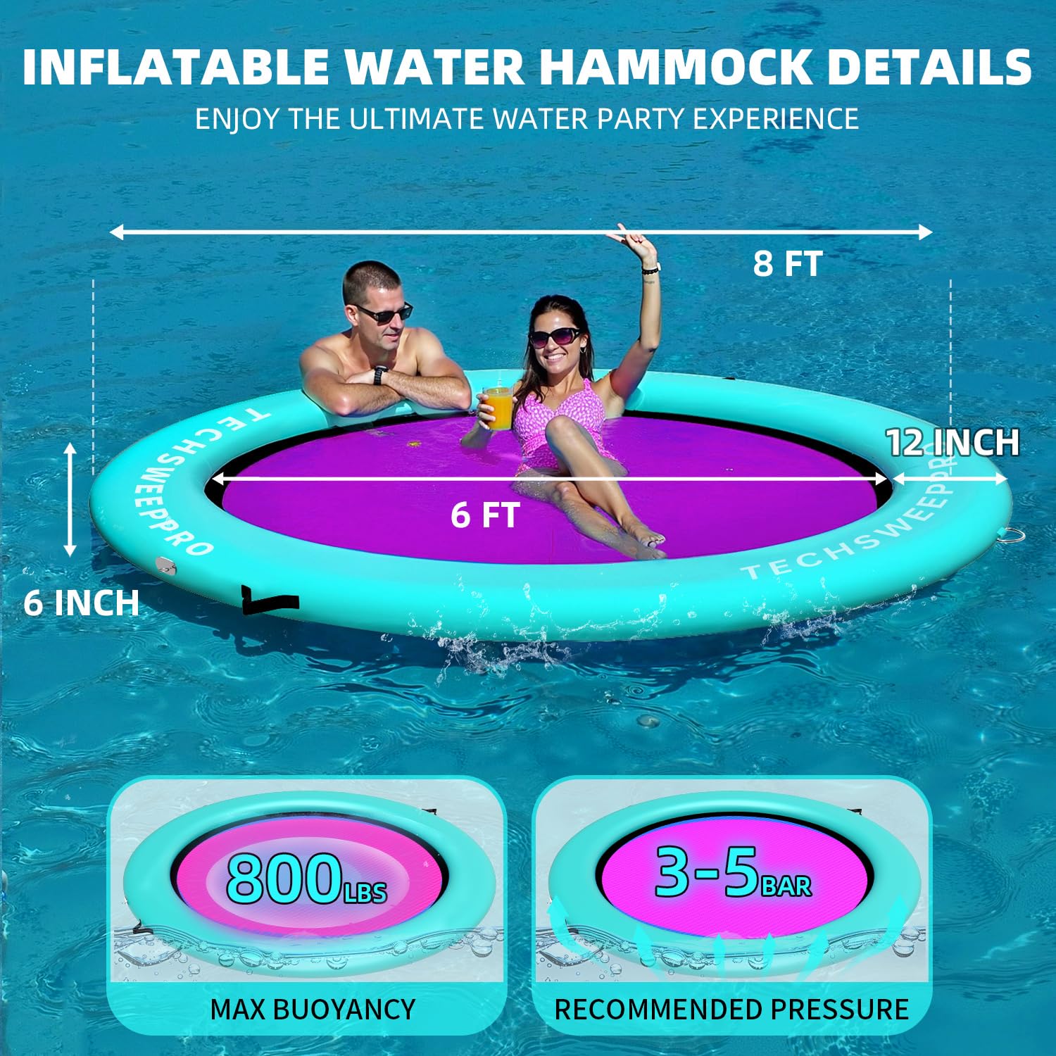 TechSweepPro Inflatable Water Hammock 800LBS Buoyancy 8ft Round Floating Ring Upgraded Materials Heavy Duty Circle Floating Raft