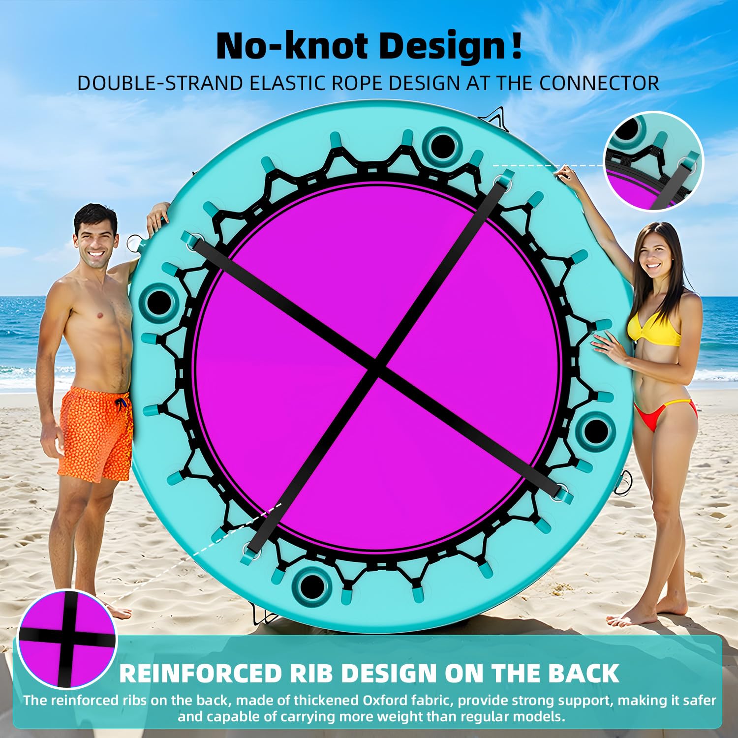 TechSweepPro Inflatable Water Hammock 800LBS Buoyancy 8ft Round Floating Ring Upgraded Materials Heavy Duty Circle Floating Raft for Adults Tanning Pool Lounger Float Island Platform Pad Mat for Party