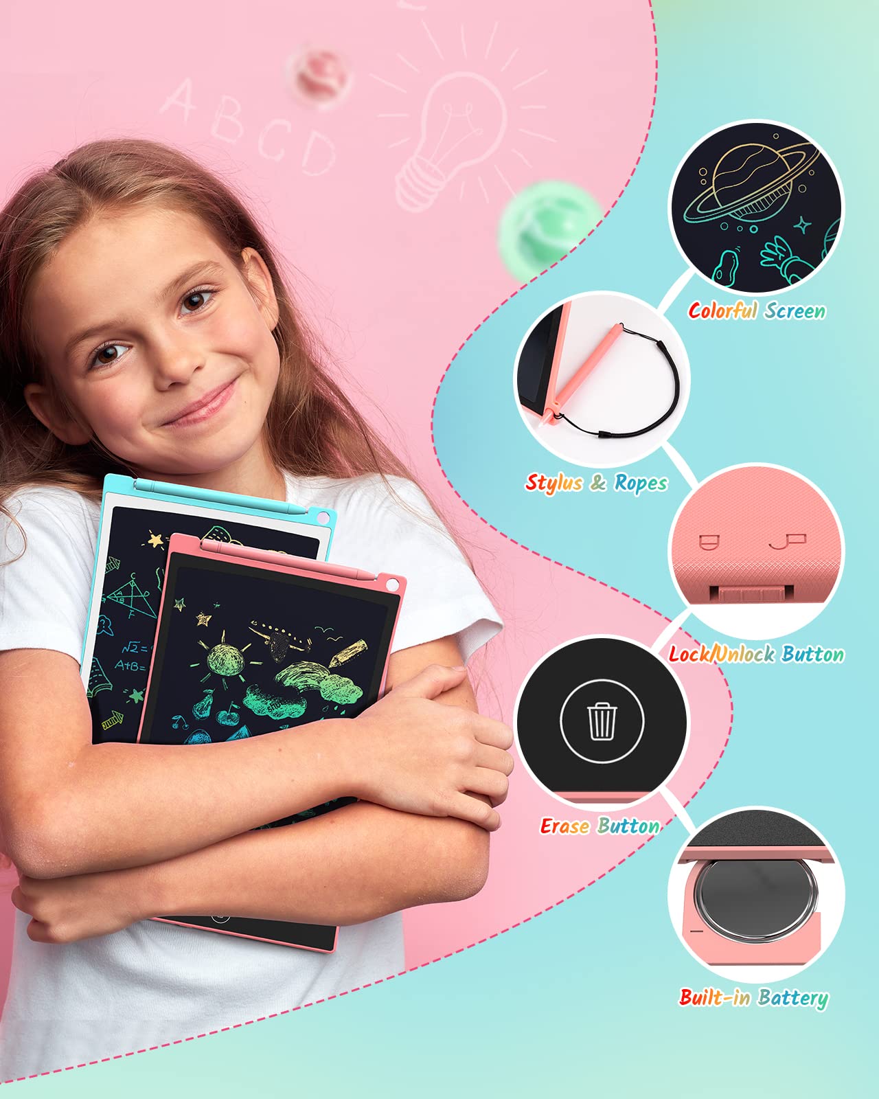 Tecjoe 2 Pack Lcd Writing Tablet, 8.5 Inch Colorful Doodle Board Drawing Tablet For Kids, Kids Travel Games Activity Learning Toys Birthday Gifts For 3 4 5 6 Year Old Boys And Girls Toddlers