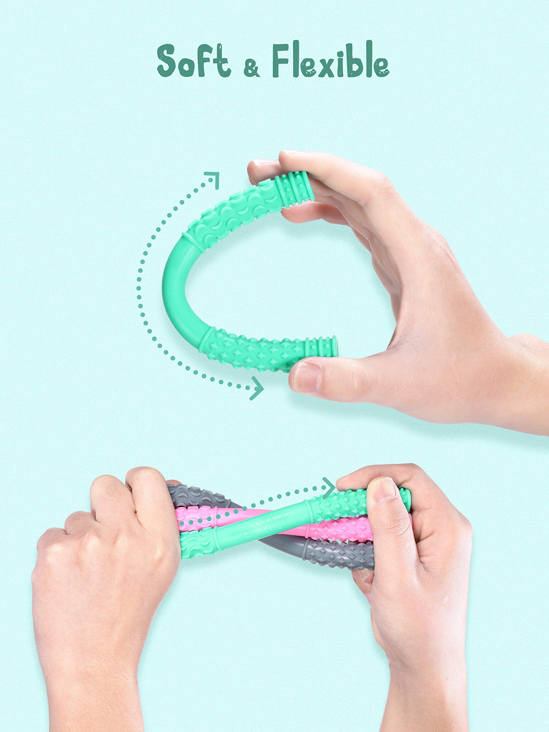 Teething Tube With Safety Shield Baby Hollow Teether Sensory Toys Gum Massager, Food-Grade Silicone For Infant 3-12 Months Boys