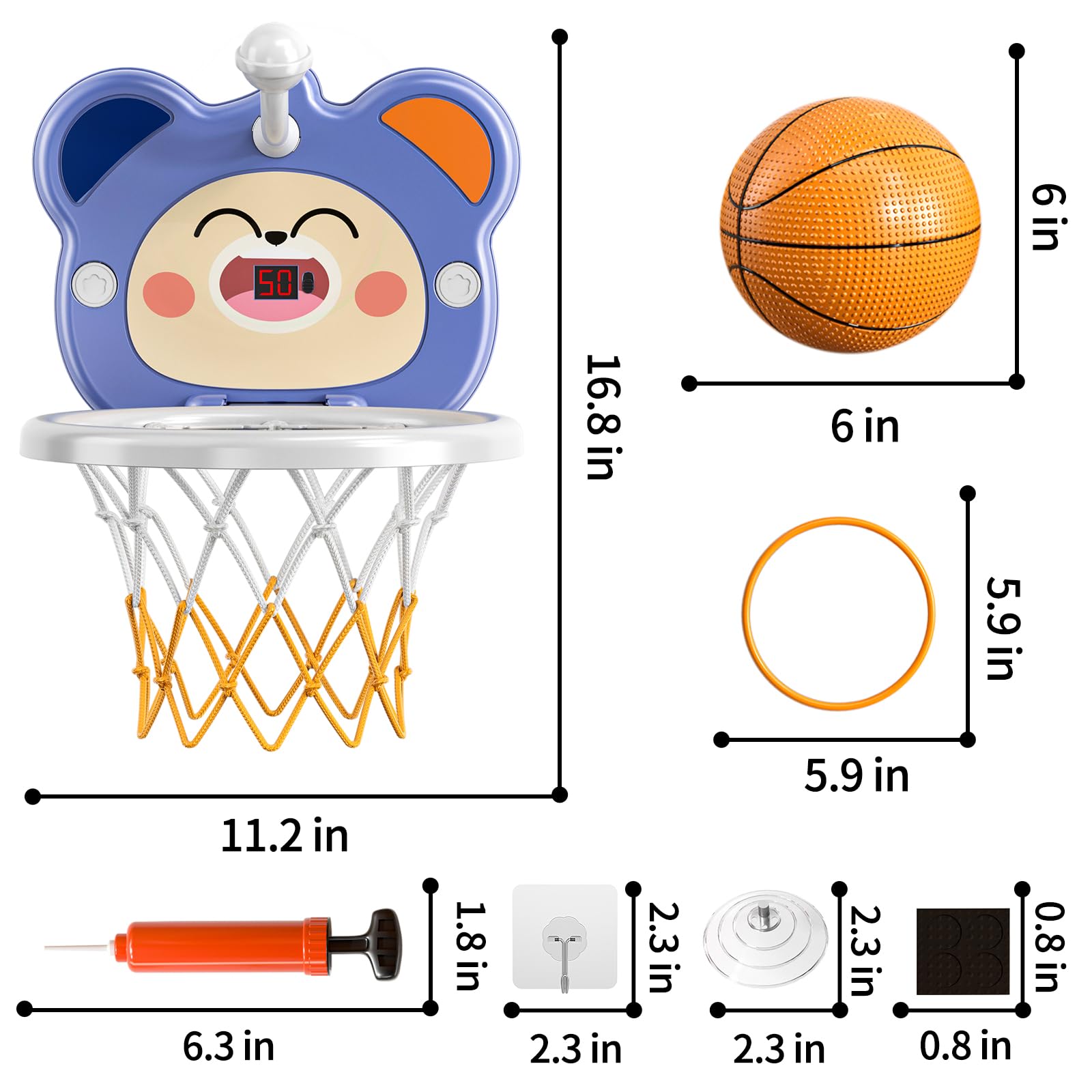 - Q: What is included in the TEMI Indoor Mini Basketball Hoop set? A: The TEMI Indoor Mini Basketball Hoop set includes 1 electronic scoreboard, 4 basketballs, and 1 pump, making it perfect for indoor or outdoor play.