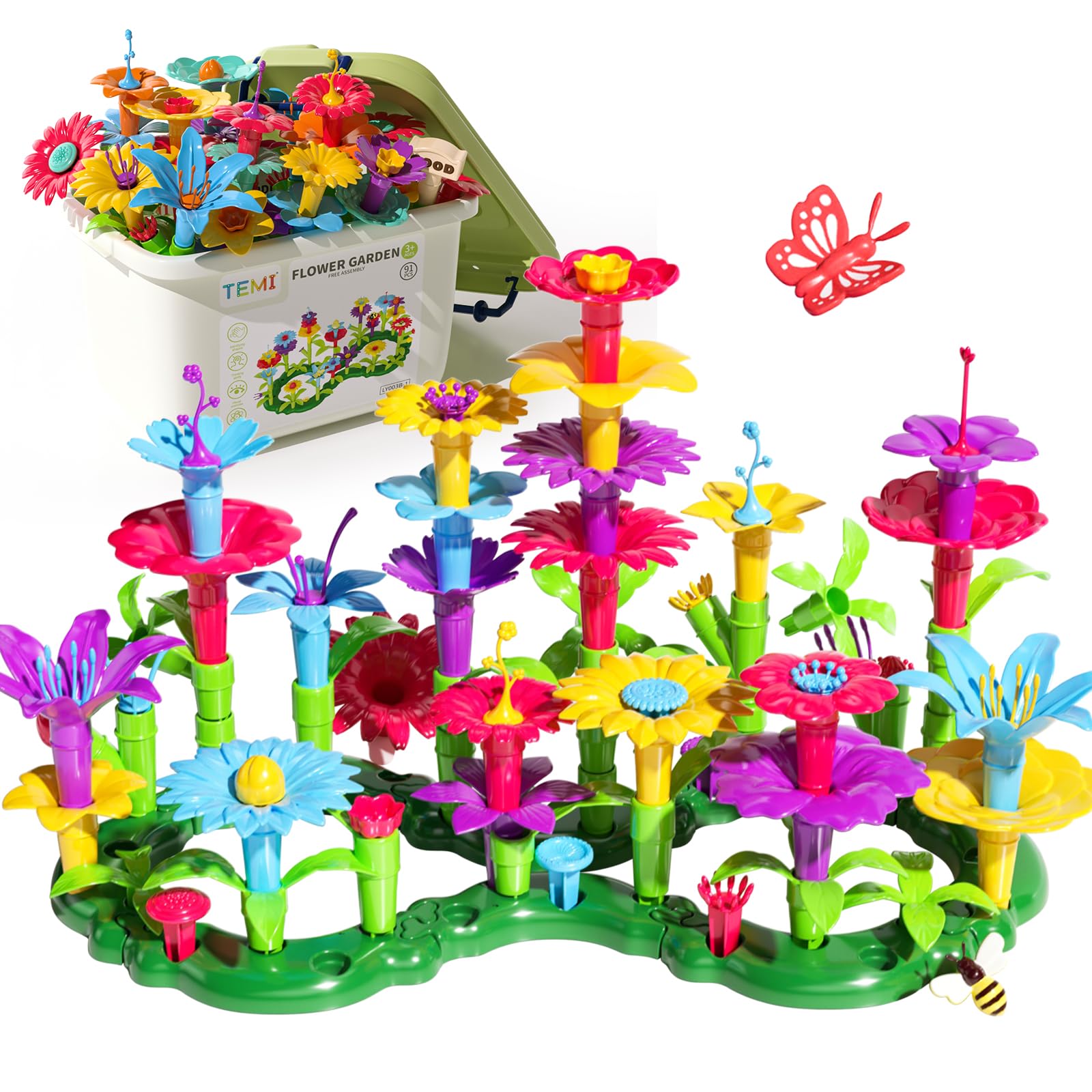 View compareTemi Toddler Toys Birthday Gifts For 3 4 5 6 7 Year Old Girls Boys, 91 Pcs Flower Garden Building Toy Stem Educational Activity Preschool Toys For Kids Age 3-6