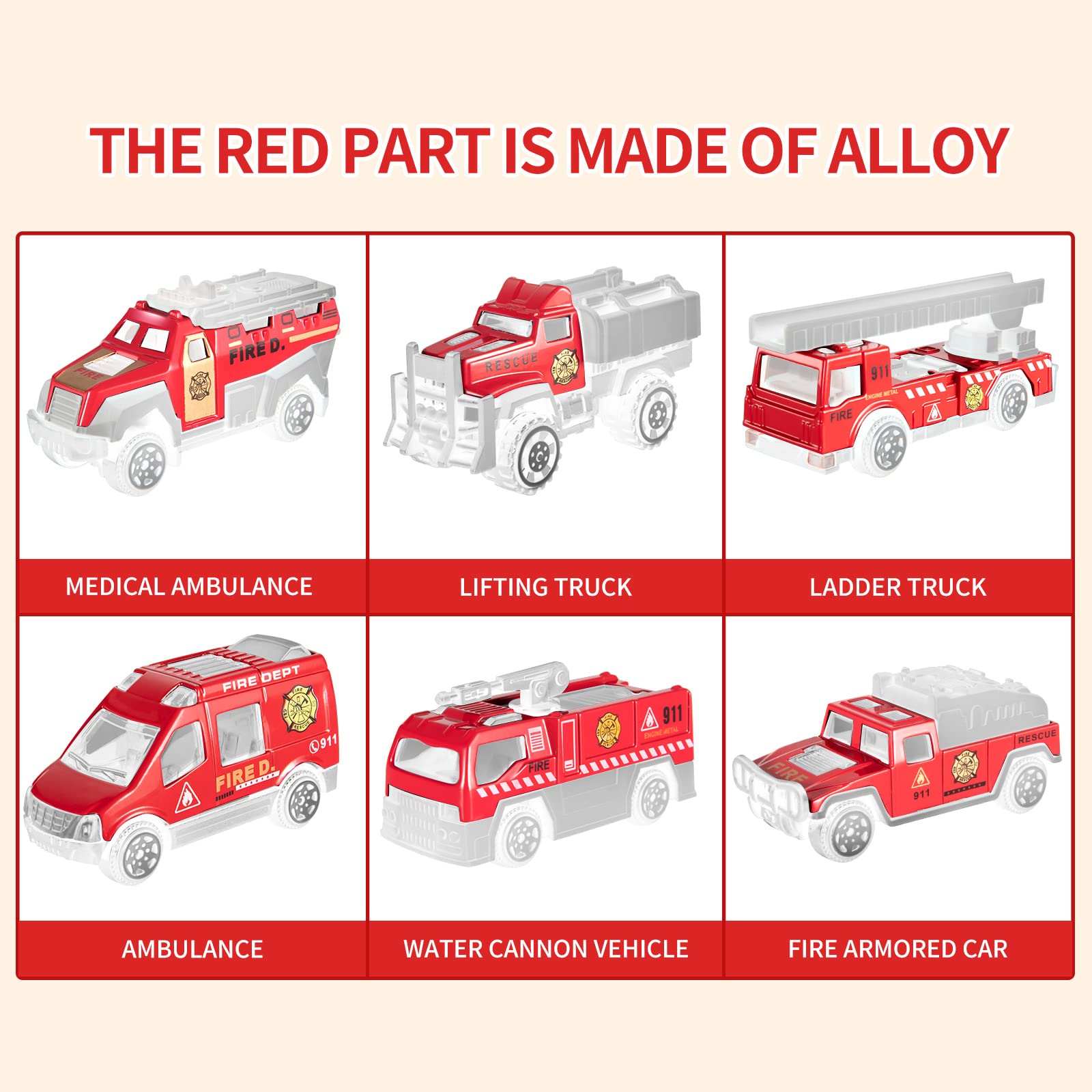 - Q: What materials are used in the construction of the fire truck toys? A: The fire truck toys are made from high-quality, eco-friendly ABS plastic and zinc alloy, ensuring durability and safety for children.