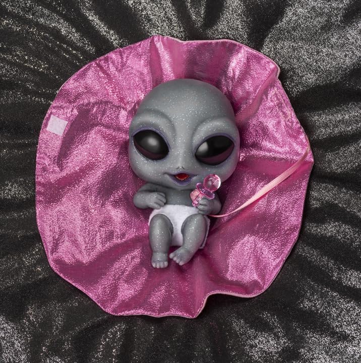 Step into a galaxy of cuteness with Zoe, a 4-inch realistic alien baby doll made from soft, TrueTouch authentic silicone. Designed for collectors and fantasy lovers alike, this miniature alien doll features hand-painted details, sparkling glittery skin, and a squeezable, lifelike feel that makes her irresistibly huggable. Zoes mirrored eyes, sweet expression, and unique four-fingered hands and feet add to her extraterrestrial charm. She arrives with a cosmic swaddling blanket, a removable pacifier, and a cloth diaper, making her ready for display or gentle play straight out of the box. Whether you're a fan of fantasy dolls, alien collectibles, or silicone mini baby dolls, Zoe is the perfect addition to your collection. Her compact size fits beautifully in any display case or imaginative play setting, transforming your space into a cosmic nursery.