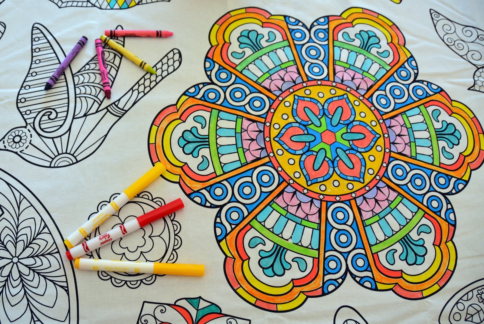 The Coloring Table - Mandala Design - Square Tablecloth - Fabric Coloring Tablecloth - Colorable Designs - Washable And Reusable