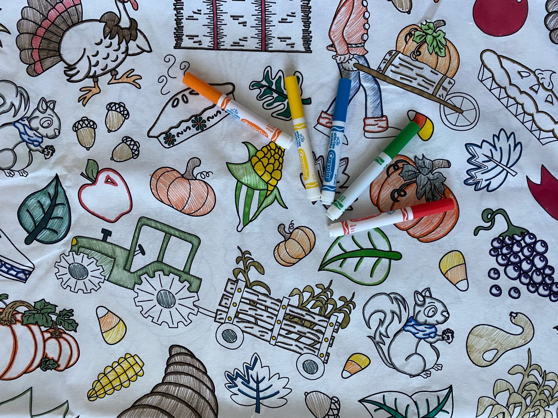 The Coloring Table - Thanksgiving And Fall Fun Design - Rectangle Tablecloth - Fabric Coloring Tablecloth - Colorable Designs -