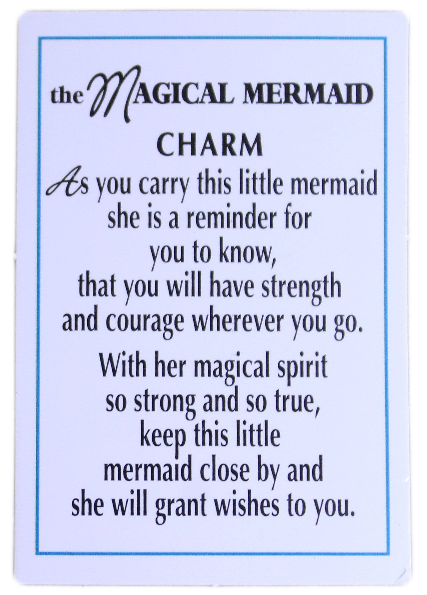 As you carry this little mermaid she is a reminder for you to know, that you will have strength and courage wherever you go. With her magical spirit so strong and so true, keep this little mermaid close by and she will grant wishes to you. This charm can be held, put in a pocket or placed on a shelf.