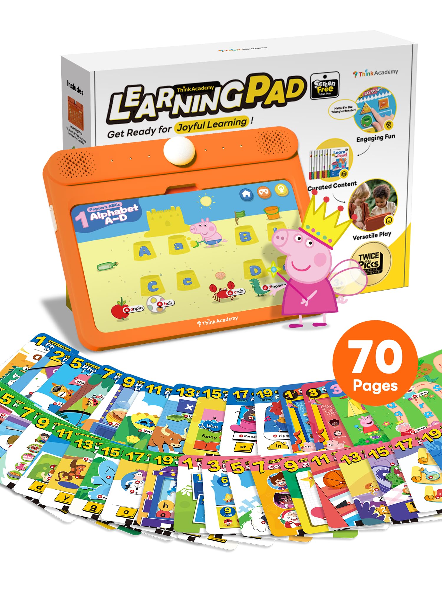Think Academy Kids Learning Pad - Educational Tablet for Ages 3-5, 70 Themes, Alphabet, Numbers & Music, Ideal Gift for Boys & Girls