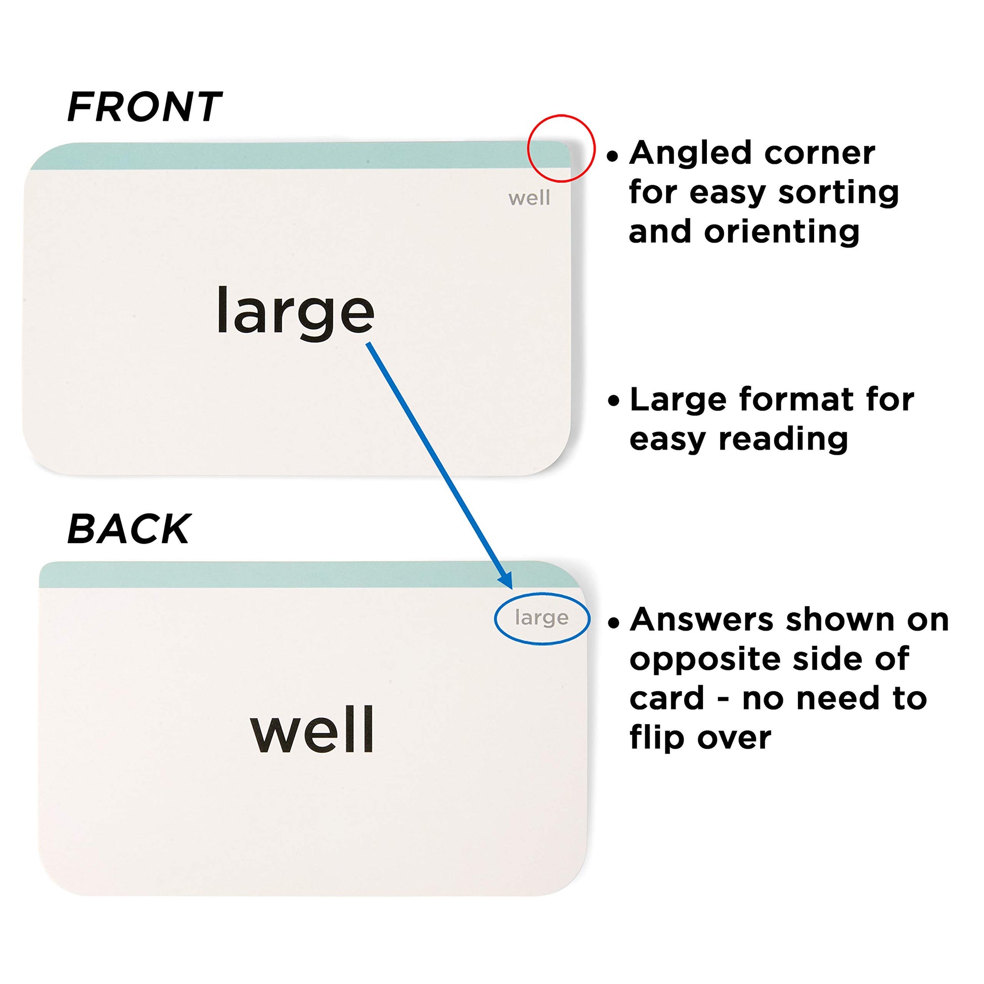 - Q: What are the dimensions of the flash cards? A: Each flash card measures 5.3 inches by 3.2 inches, providing a jumbo-sized format that is easy for young learners to handle and read.