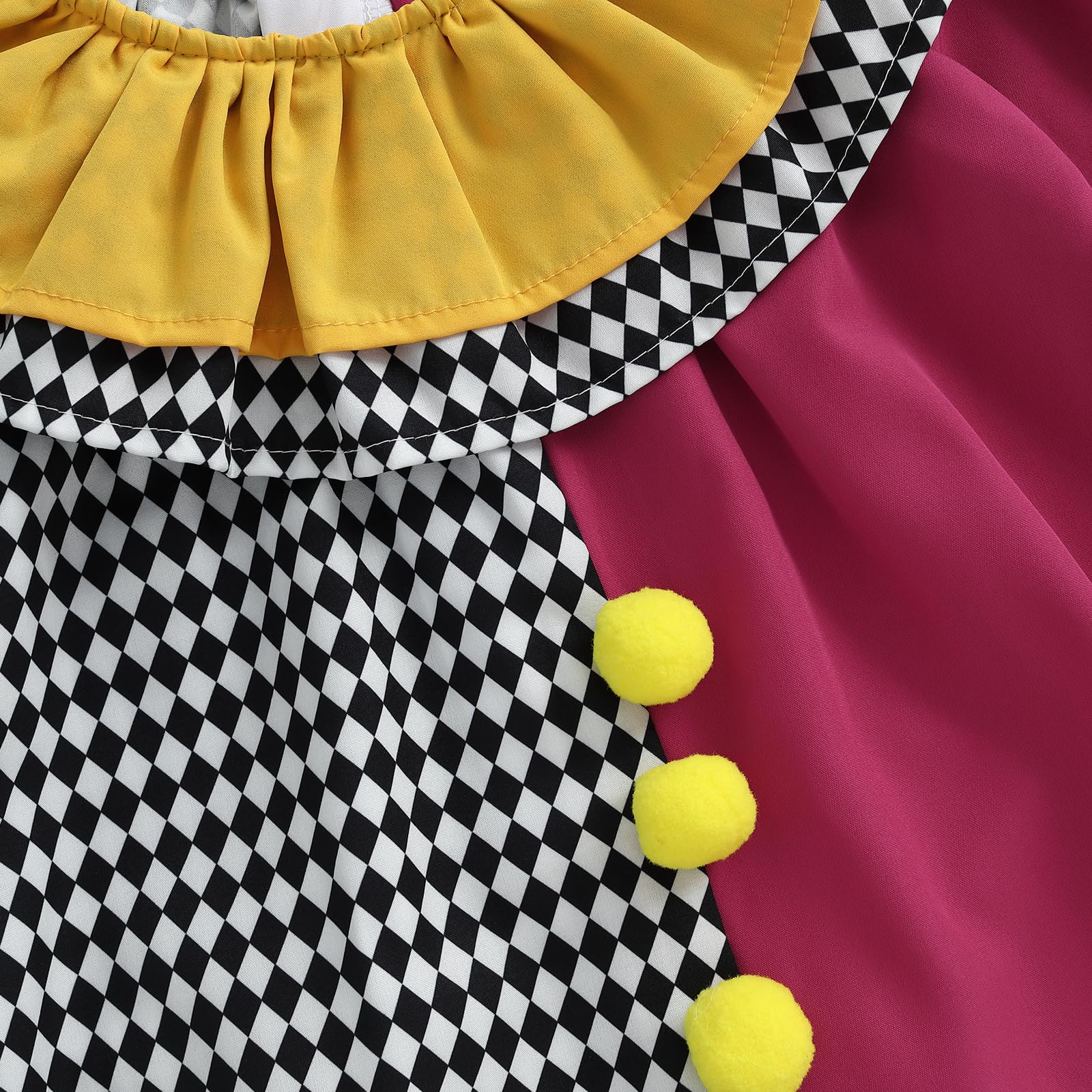 Toddler Baby Clown Halloween Costume Contrast Color Long Sleeve Jumpsuit and Hat 2 Pcs SetSize (cm)6-12M Length: 62 Bust: 70 Sleeve: 32 Hip: 84 Advised Age: 6-12 Months12-18M Length: 66 Bust: 72 Sleeve: 34 Hip: 86 Advised Age: 12-18 Months18-24M Length: 70 Bust: 74 Sleeve: 36 Hip: 88 Advised Age: 18-24 Months2-3Y Length: 75 Bust: 77 Sleeve: 39 Hip: 91 Advised Age: 2-3 Years3-4Y Length: 80 Bust: 80 Sleeve: 42 Hip: 94 Advised Age: 3-4 Years4-5Y Length: 85 Bust: 83 Sleeve: 45 Hip: 97 Advised Age: 4-5 YearsSize (inch)6-12M Length: 24.41 Bust: 27.56 Sleeve: 12.60 Hip: 33.07 Advised Age: 6-12 Months12-18M Length: 25.98 Bust: 28.35 Sleeve: 13.39 Hip: 33.86 Advised Age: 12-18 Months18-24M Length: 27.56 Bust: 29.13 Sleeve: 14.17 Hip: 34.65 Advised Age: 18-24 Months2-3Y Length: 29.53 Bust: 30.31 Sleeve: 15.35 Hip: 35.83 Advised Age: 2-3 Years3-4Y Length: 31.50 Bust: 31.50 Sleeve: 16.54 Hip: 37.01 Advised Age: 3-4 Years4-5Y Length: 33.46 Bust: 32.68 Sleeve: 17.72 Hip: 38.19 Advised Age: 4-5 YearsSpecifications:Material: 95% Polyester and 5% ElastaneSize: 6-12 Months/12-18 Months/18-24 Months/2-3 Years/3-4 Years/4-5 YearsColor: Multi-ColorPattern: Contrast ColorSleeve: Long SleeveGender: UnisexPackage Contents1 * Jumpsuit, 1 * HatNote:1. Due to manual measurement, there may be small errors in size.2. Depending on the computer monitor used, colors may a little different from actual colors.PromiseIf the product has any quality problems, please let us know and we will help you solve it as soon as possible.