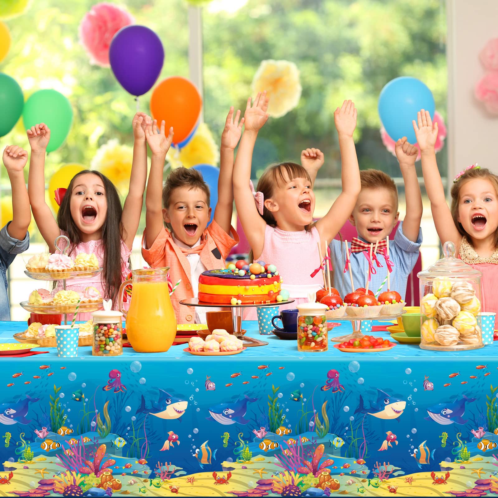 Tiamon Under The Ocean Tablecloths Ocean Waves Table Covers Animal Shark Tablecloths Underwater Plastic Table Covers for Fishing