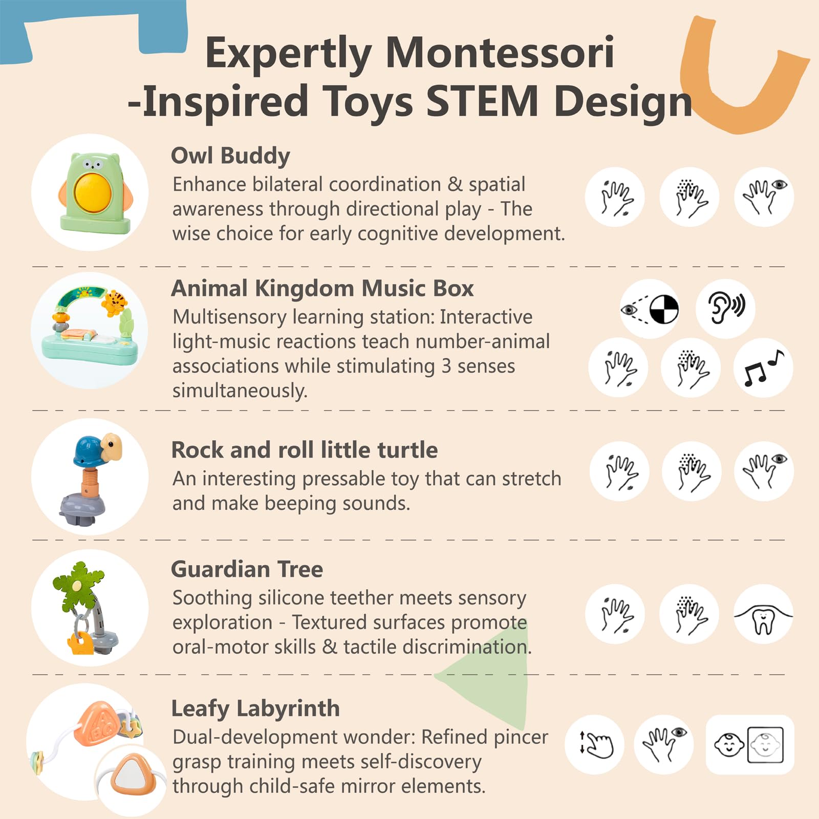 3-Stage Grow-with-Baby Activity Center (6+ Months) Watch your child grow through every developmental phase with this versatile Montessori-inspired activity table. Designed to adapt as your baby learns: Stage 1: Sensory Play (6-12 Months) - Let your baby explore textures, sounds, and colors safely from the adjustable bouncer seat. Stage 2: Stand & Explore (12-18 Months) - Encourage standing and curiosity with a sturdy 360-degree activity panel featuring interactive toys. Stage 3: Walk-Around Creativity (18+ Months) - Transform into a toddler table for block-building, cruising, and imaginative play. Supports motor skills, balance, and cognitive growth at every stage.