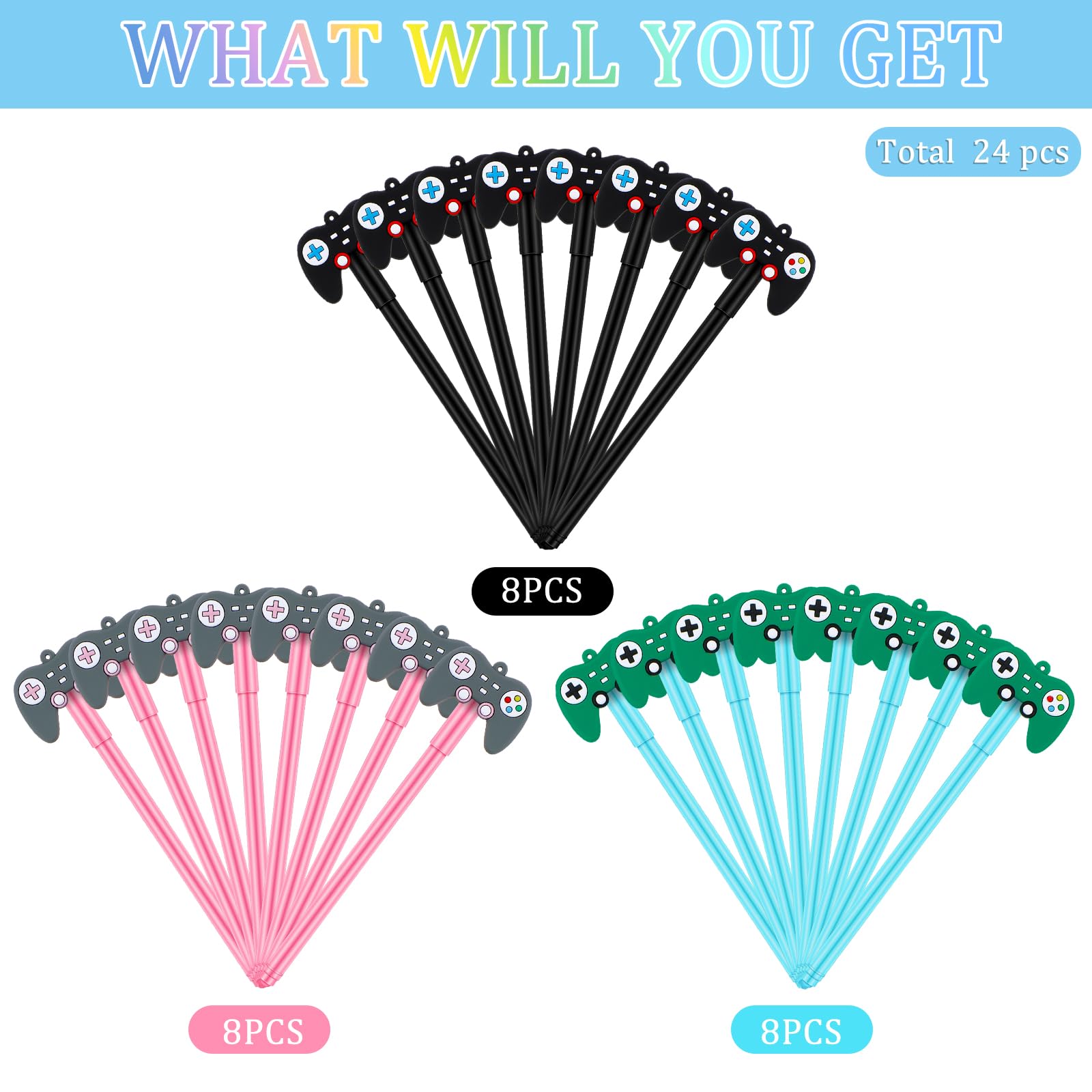 Tinlade 24 Pcs Video Game Pens Gamer Party Favors Video Gaming Themed Birthday Party Favor Gifts Controller Ink Kids Pens For Boys Classroom Prizes (Black,Green,Gray)