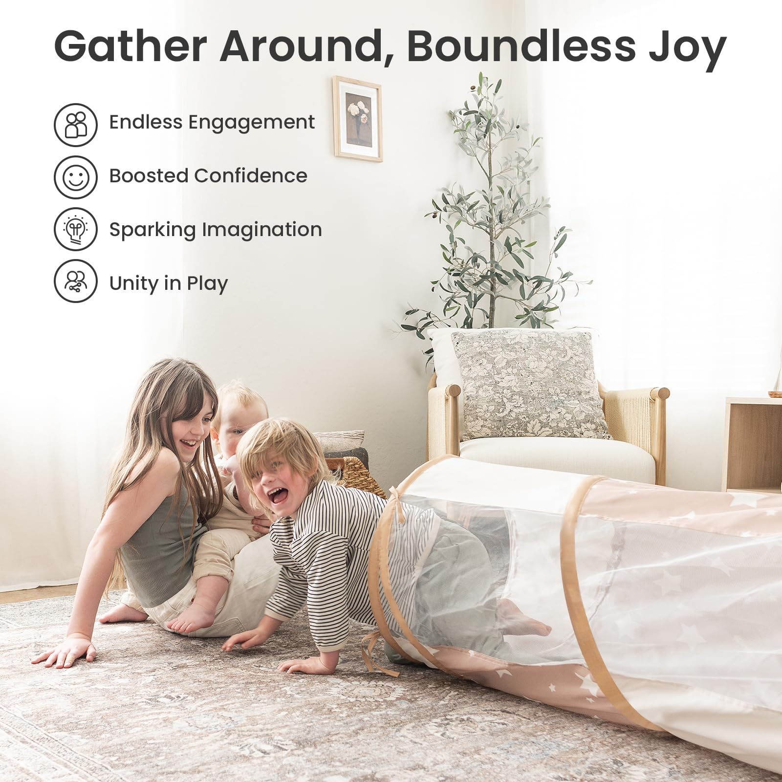 • Q: What makes this tunnel a great gift for children? A: This tunnel is an ideal gift for birthdays and Christmas, offering both fun and physical activity. Its gentle beige color with star patterns adds a stylish touch to any play area.