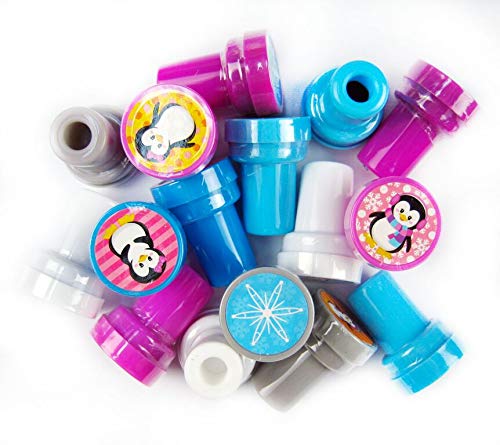 Tiny Mills 24 Pcs Penguin Assorted Stamps for Kids Self Ink Stamps (12 Different Designs) Birthday Party, Stocking Stuffers, Par