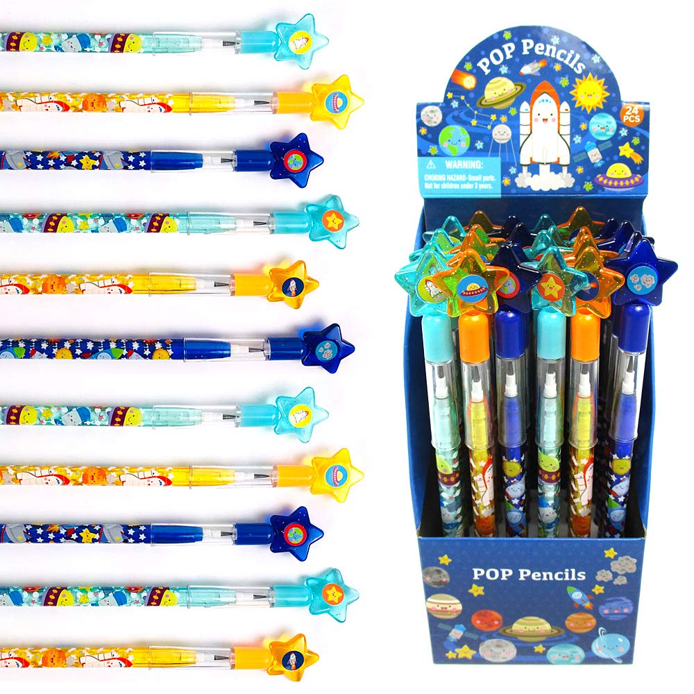 - Q: What are the unique features of the TINYMILLS outer space rocket pencils? A: The TINYMILLS outer space rocket pencils feature a multi-point design with 24 pencils, each containing 9 refillable leads. They also have a stackable design with a star cap for easy storage and a fun rocket theme, making them perfect for space-themed parties and classroom rewards.