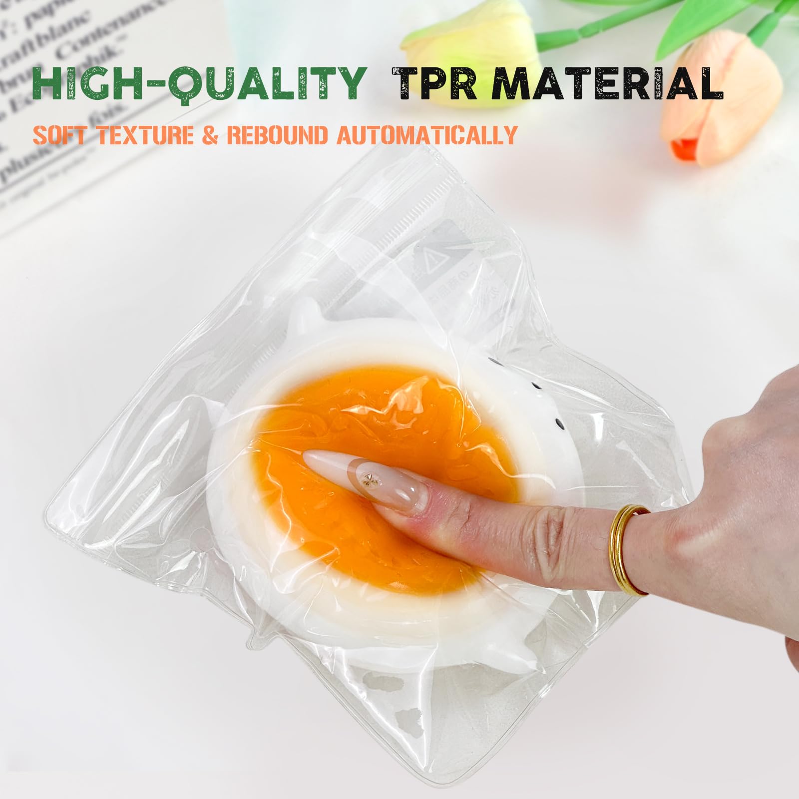The squishy is cute and soft jelly that fits perfectly in the palm of the hands. It is placed in a transparent bag and the small balls and other small accessories inside are placed manually so the color size and style are random. These stress balls for mature-themed can be easily tucked into pockets backpacks bags etc. as travel toys!