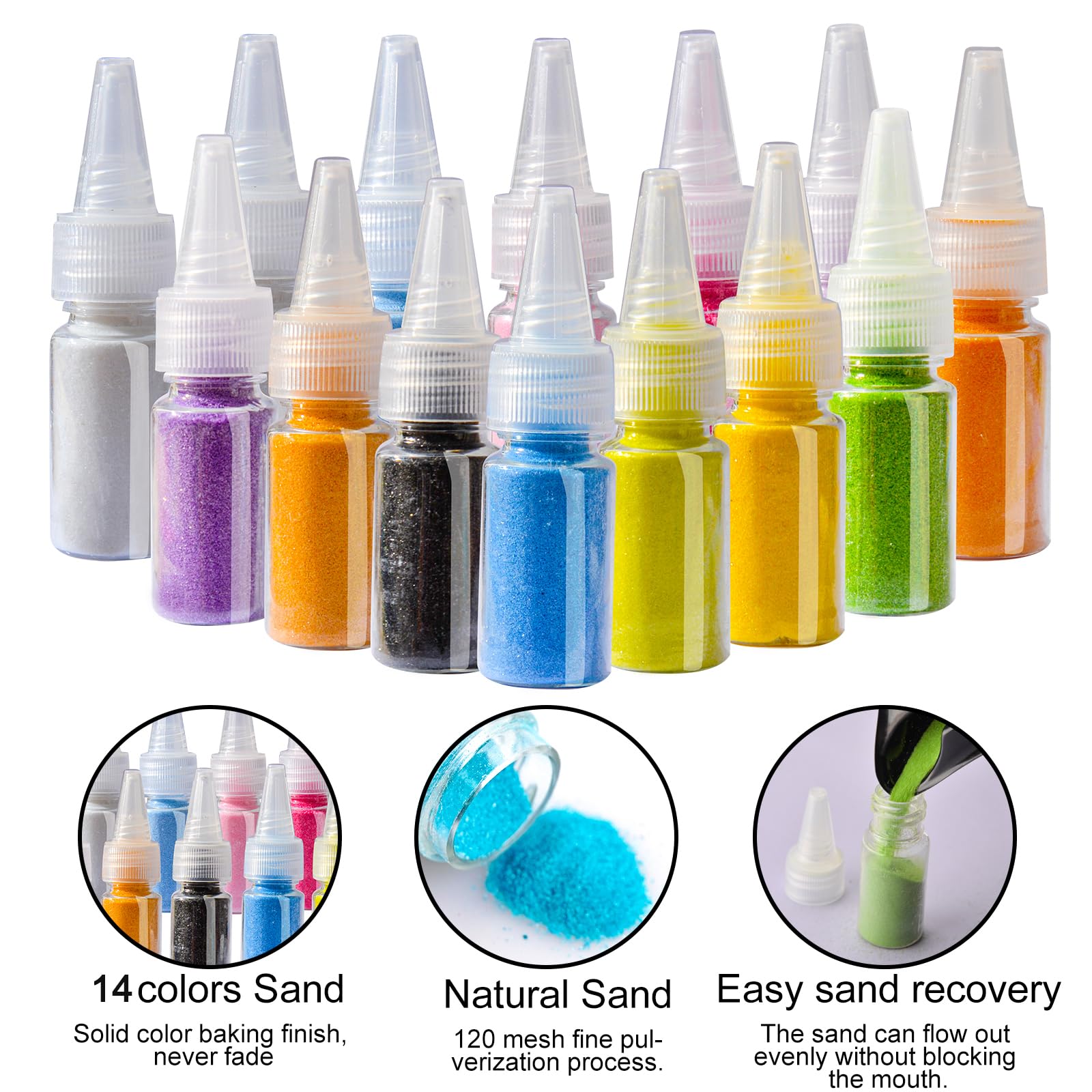 - Q: What materials are included in the TNOONE Sand Art Kit? A: The kit includes 29 pieces: 12 sheets of horse animal sand painting cards, 14 bottles of colored art sand, a sand table, bamboo skewers, and brushes. This variety encourages creativity and artistic expression in kids.