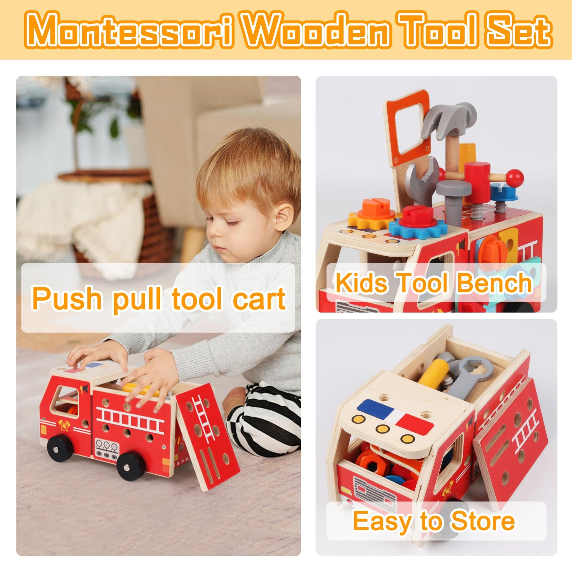 Toddler Tool Kit - 33 PCS Montessori Toddlers Tool Box, Kids Pretend Play Tool Set Age 2-4, STEM Educational Toys for Age 3, Wooden Construction Toys, Boys Birthday Gift 2 3 4 5 Year Old