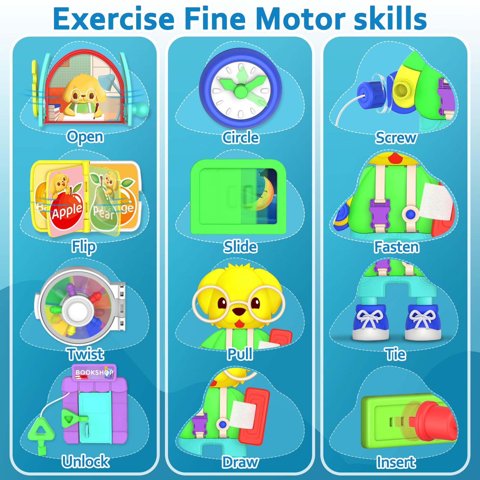 Busy Board Montessori Toys For Toddlers W/ Bilingual Music, 20+ Activities Sensory Board Educational Toy For 2-4 Year Old Boy Girl, Fine Motor Skill Learning Gifts For Kids Travel