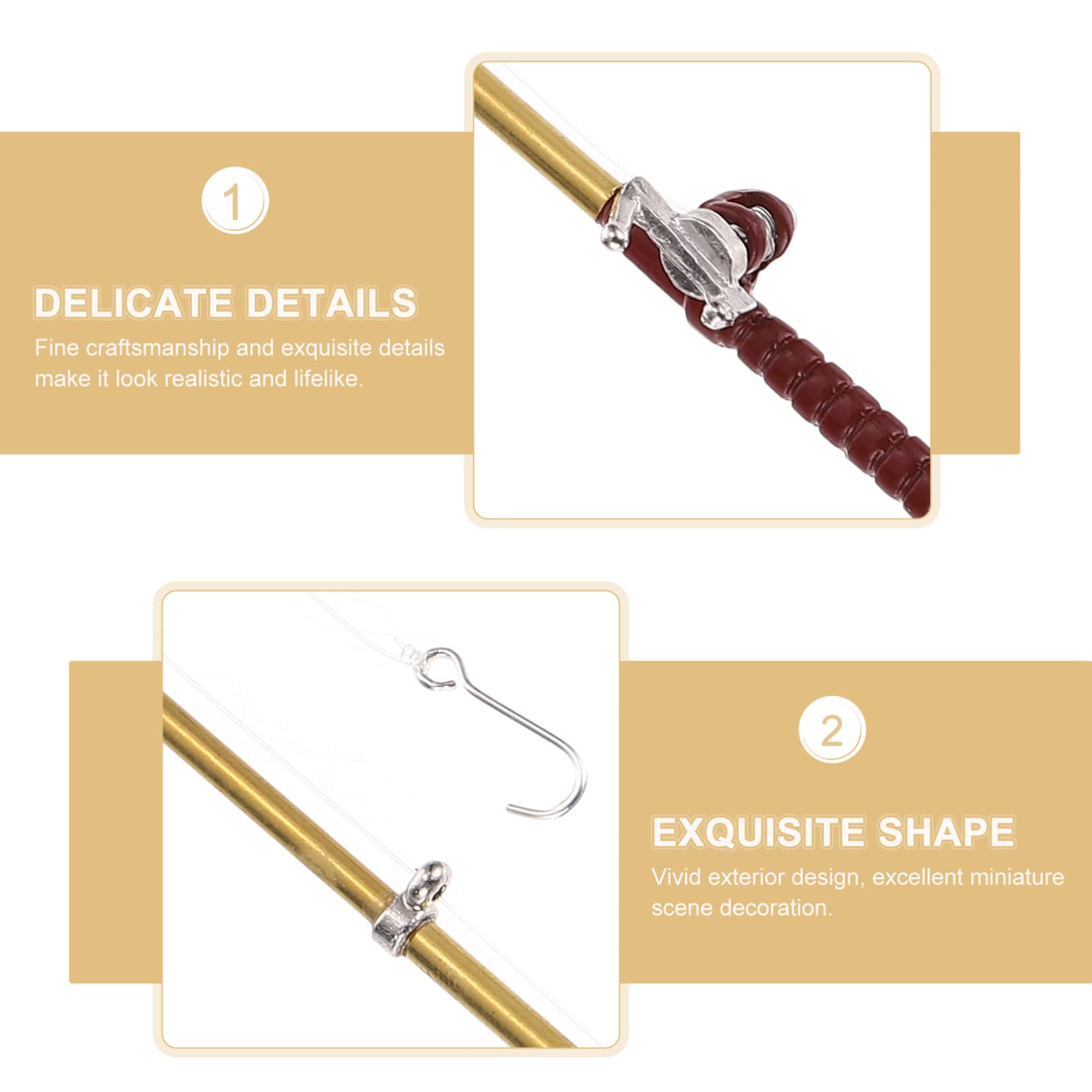 Toddmomy Miniature Dollhouse Fishing Pole Toy Fishing Pole Miniature Fishing Rod Mini Fishing Pole for Dollhouse Decorations
