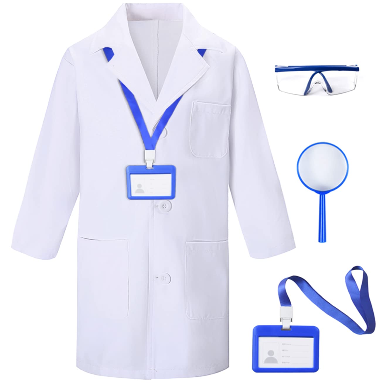 Togrop 4Pcs Doctor Scientist Lab Costume For Kids Role Play Thick White Coat Birthday Party Gift 5-6T