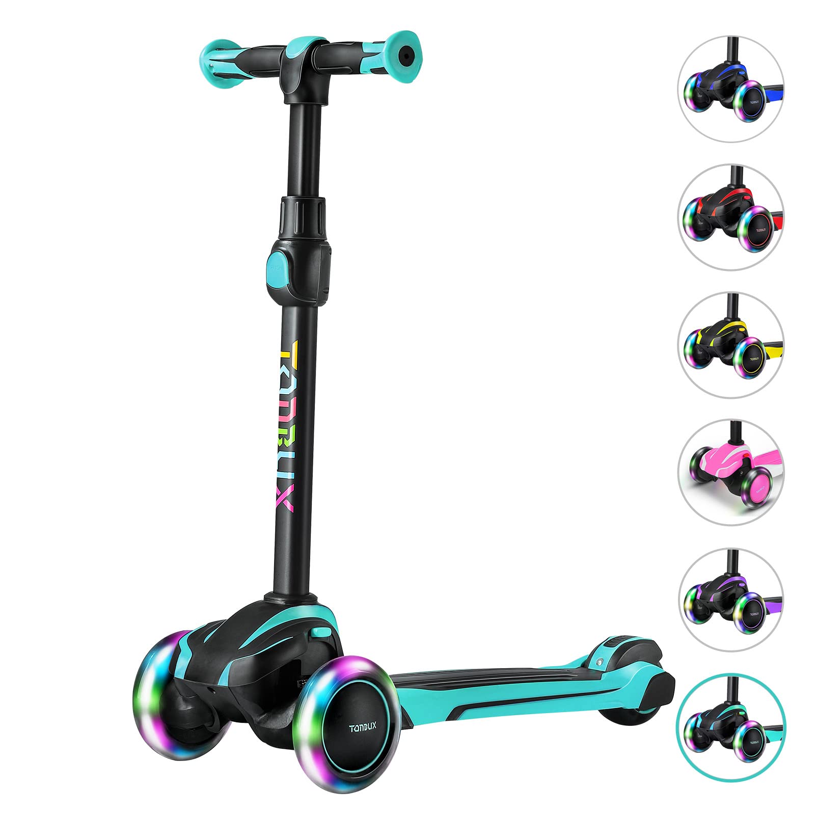 - Q: Are the wheels on this scooter safe and durable? A: Yes, the TONBUX Kids Scooter is equipped with light-up wheels that are not only fun but also designed for safety. The wheels flash automatically when riding, and the scooter's robust construction, including an aluminum alloy frame, ensures durability while supporting a weight capacity of up to 110 lbs.