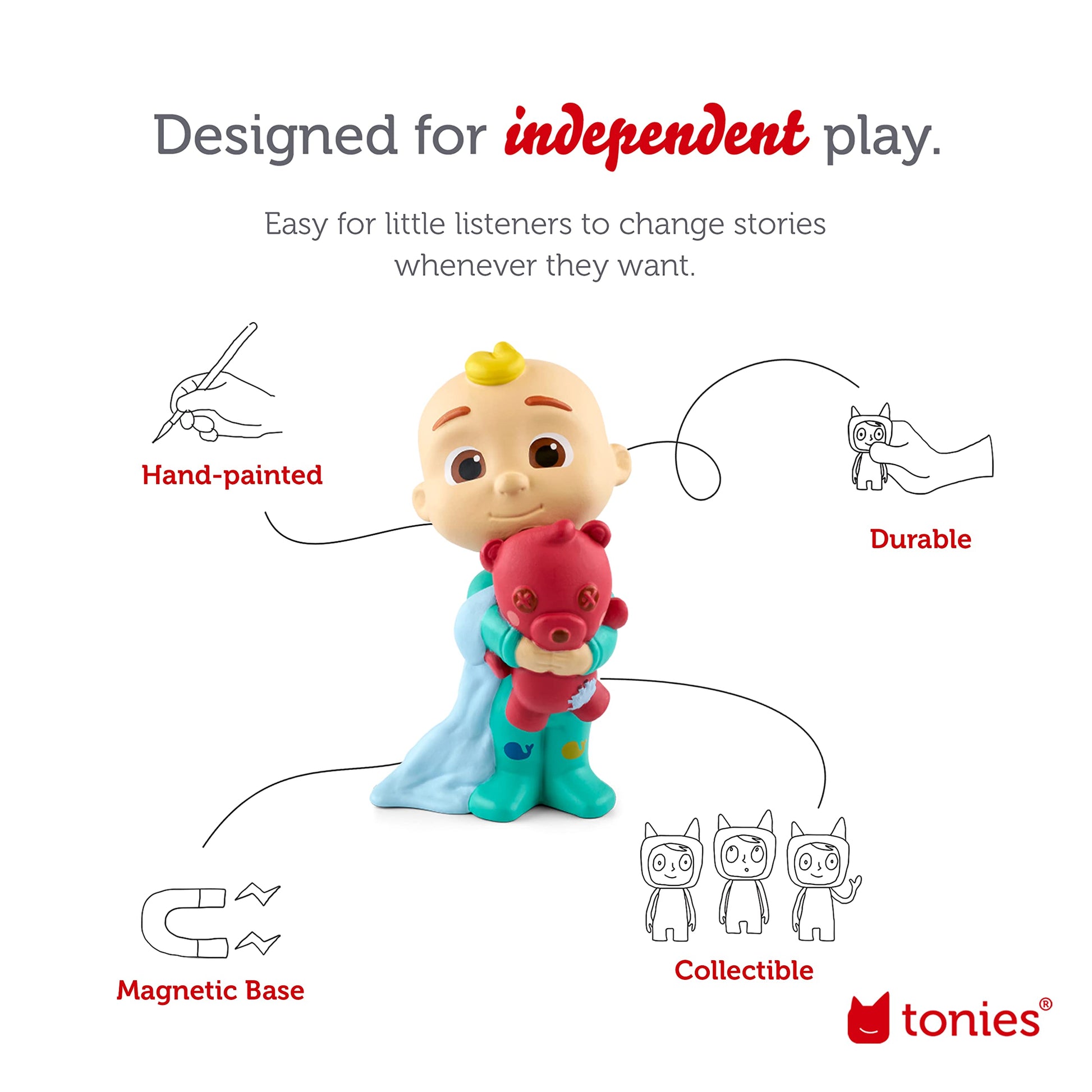 • Q: Do I need a special player to use the Tonies CoComelon audio toy? A: Yes, the Tonies CoComelon audio toy requires a Toniebox Audio Player to play the audio, which is sold separately.